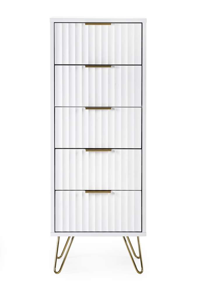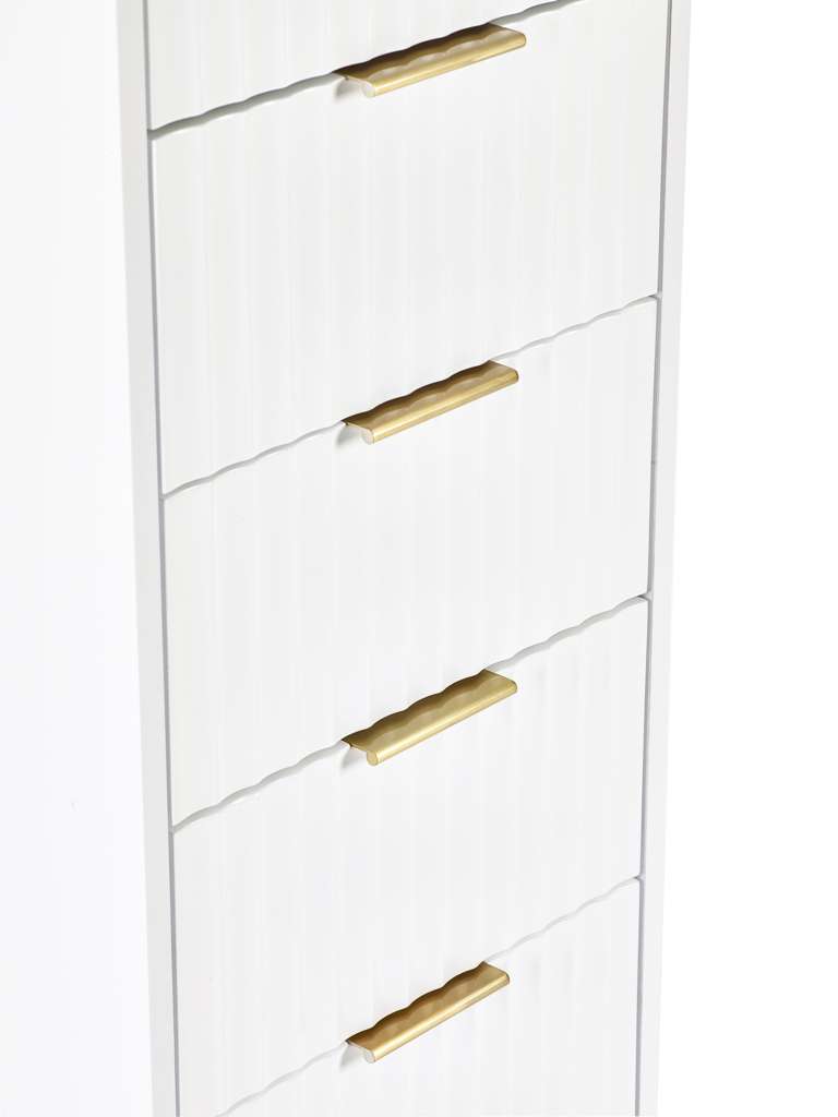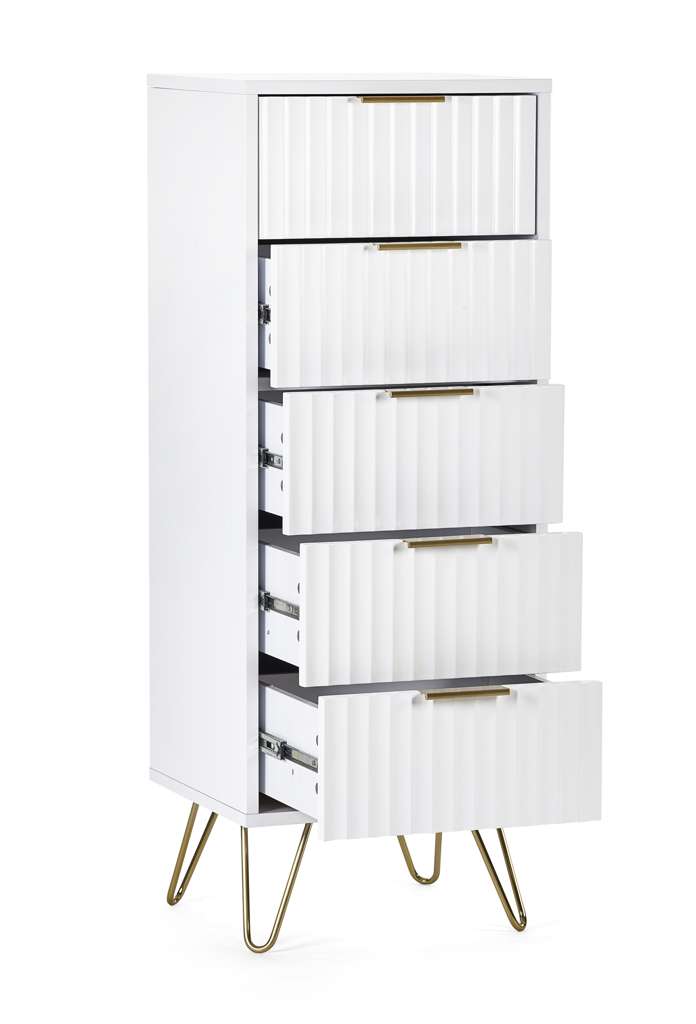 Sculpted fronts are a look that you do NOT want to miss out on. Murano is inspired by chic design â the brushed gold accents promote a high-end aesthetic that is on-trend but also perfect for various interior styles. How about pairing this collection with velvet sofas or bed to create the perfect feel for your home? This collection includes white finished bedroom pieces, and black finished living.