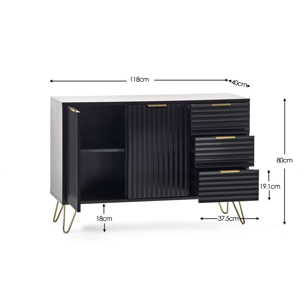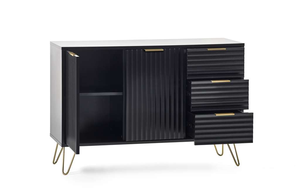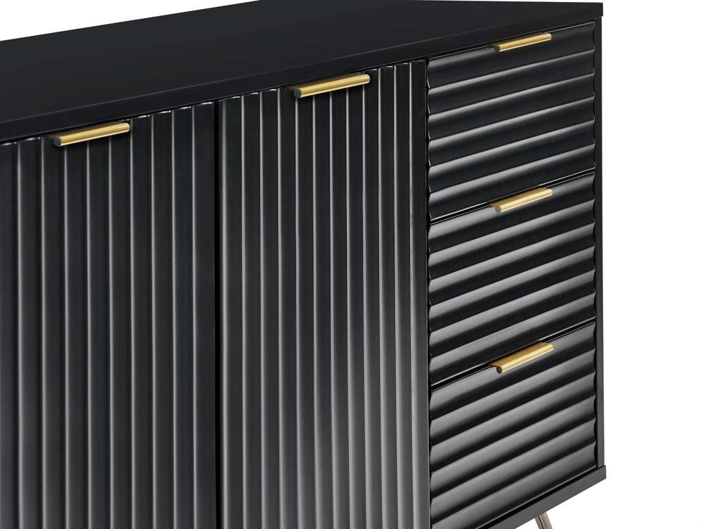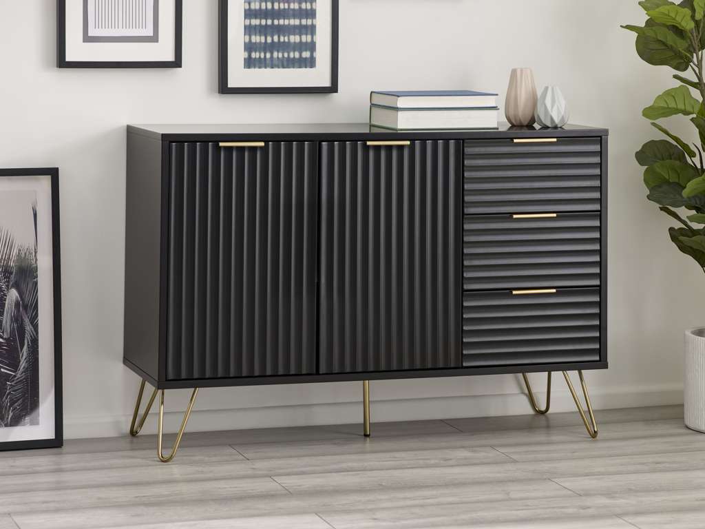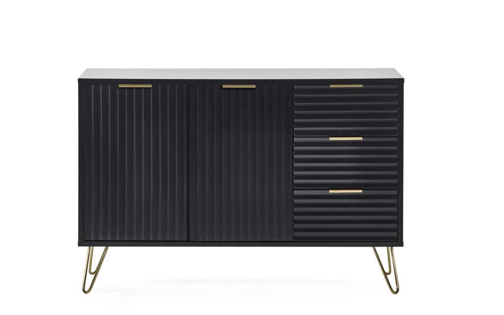 Sculpted fronts are a look that you do NOT want to miss out on. Murano is inspired by chic design â the brushed gold accents promote a high-end aesthetic that is on-trend but also perfect for various interior styles. How about pairing this collection with velvet sofas or bed to create the perfect feel for your home? This collection includes white finished bedroom pieces, and black finished living.