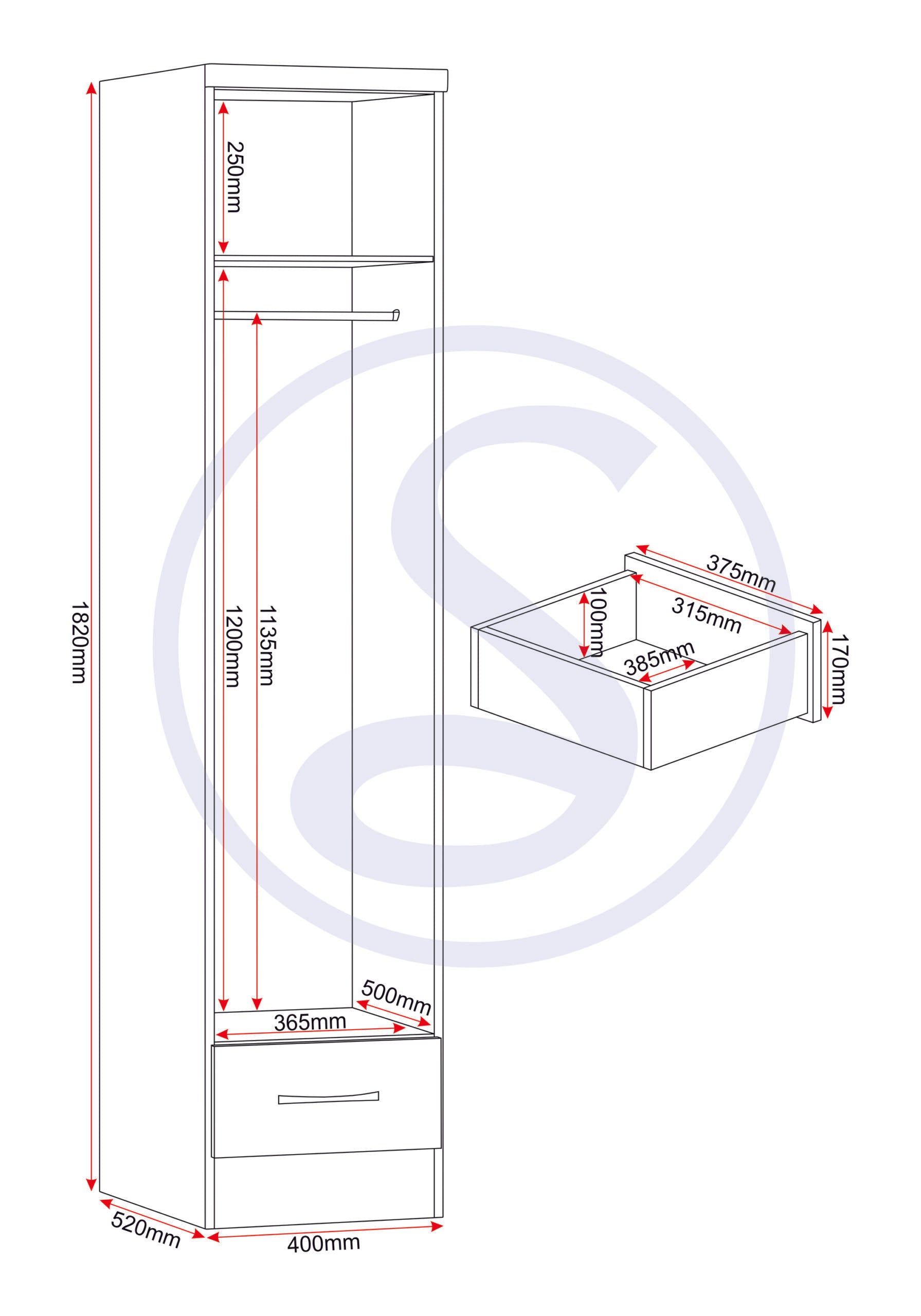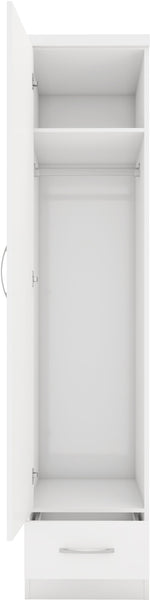Nevada 1 Door 1 Drawer Wardrobe - WHITE GLOSS