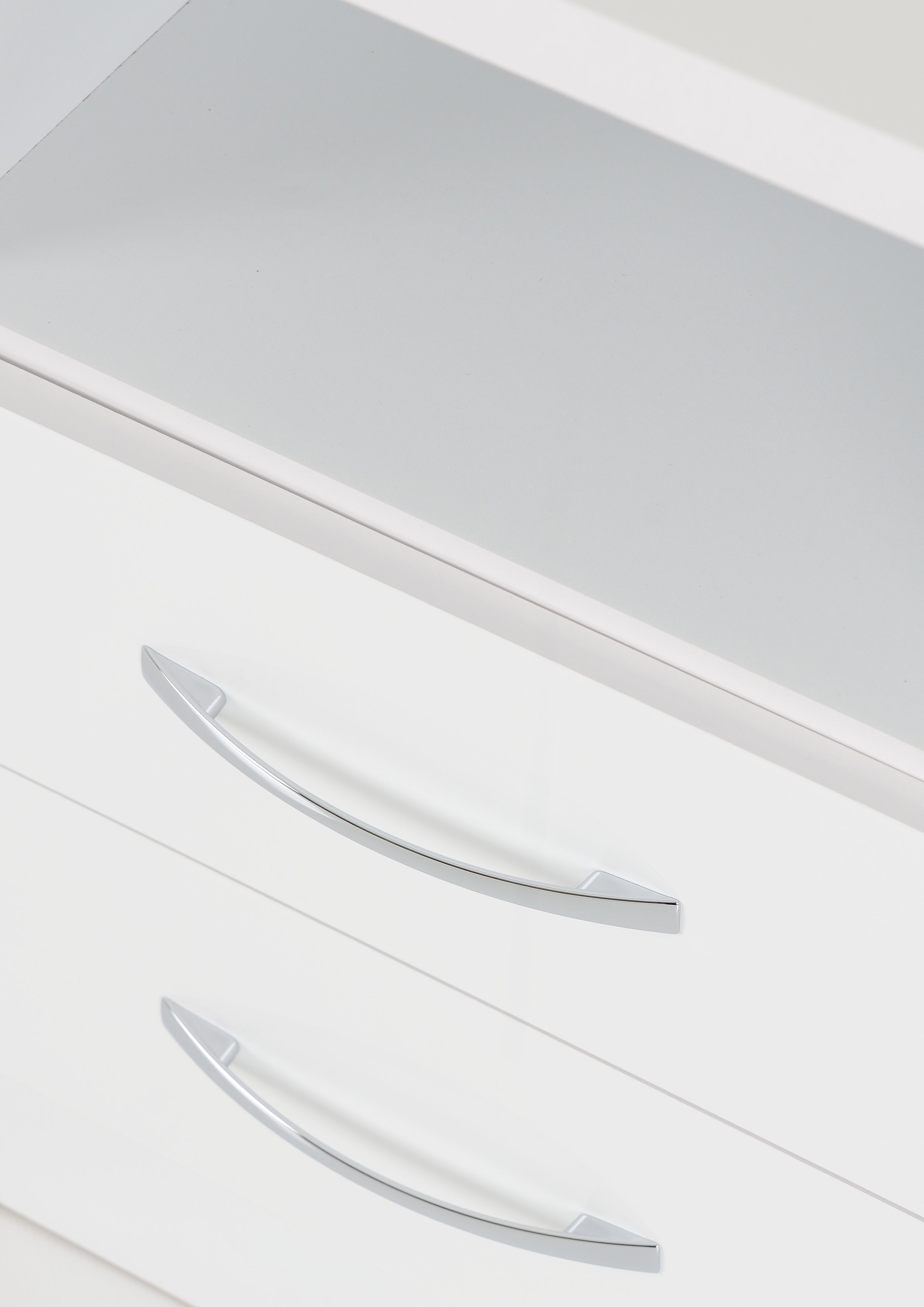 Make space feel calm and considered with the Nevada 2 Drawer Bedside wrapped in a White Gloss. Practical and good-looking, it delivers generous storage for everyday life without the fuss. Sturdy by design, it pairs simple lines with a quality feel that lasts.