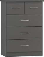 - Nevada 3+2 Drawer Chest - 3D Effect Grey