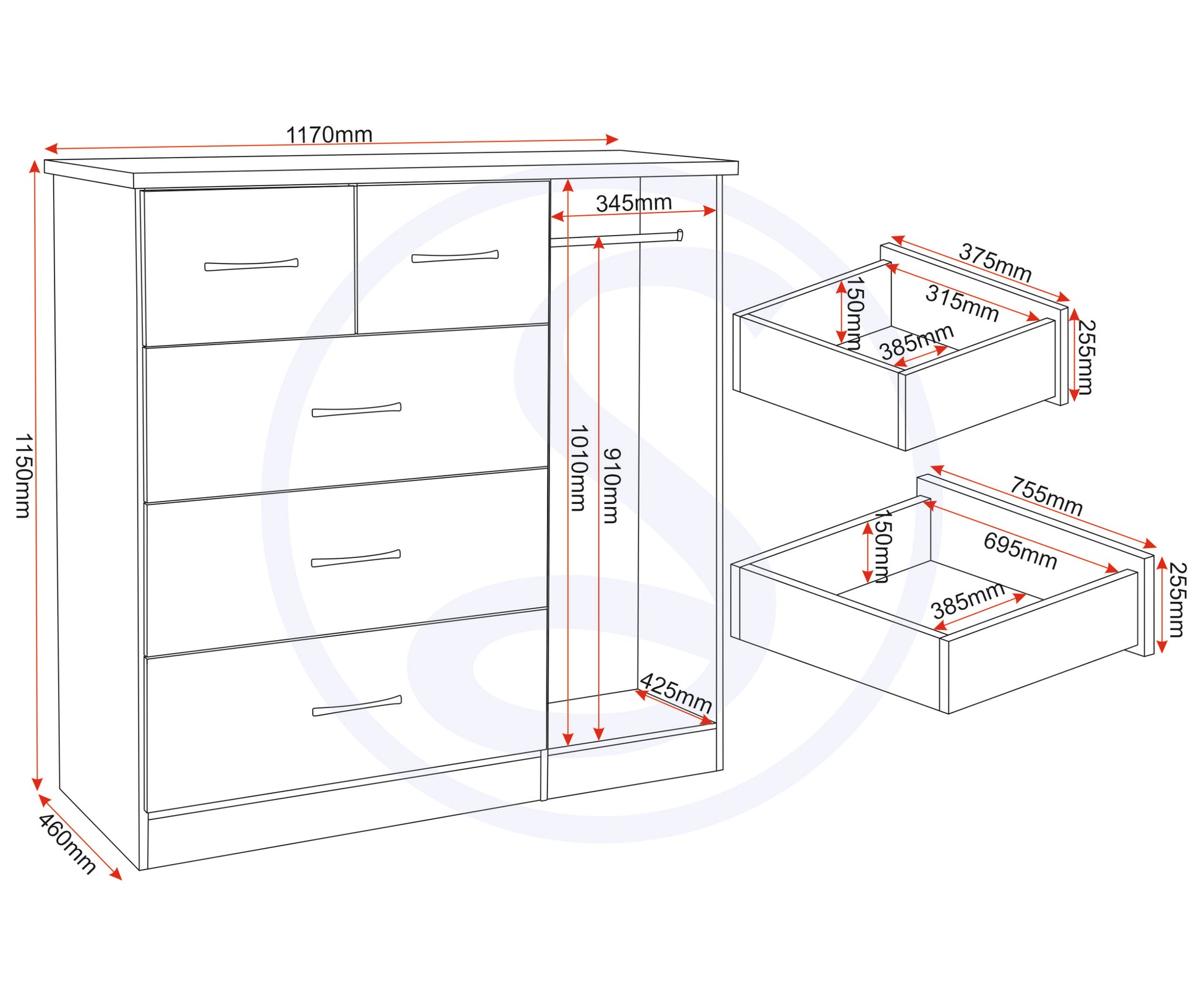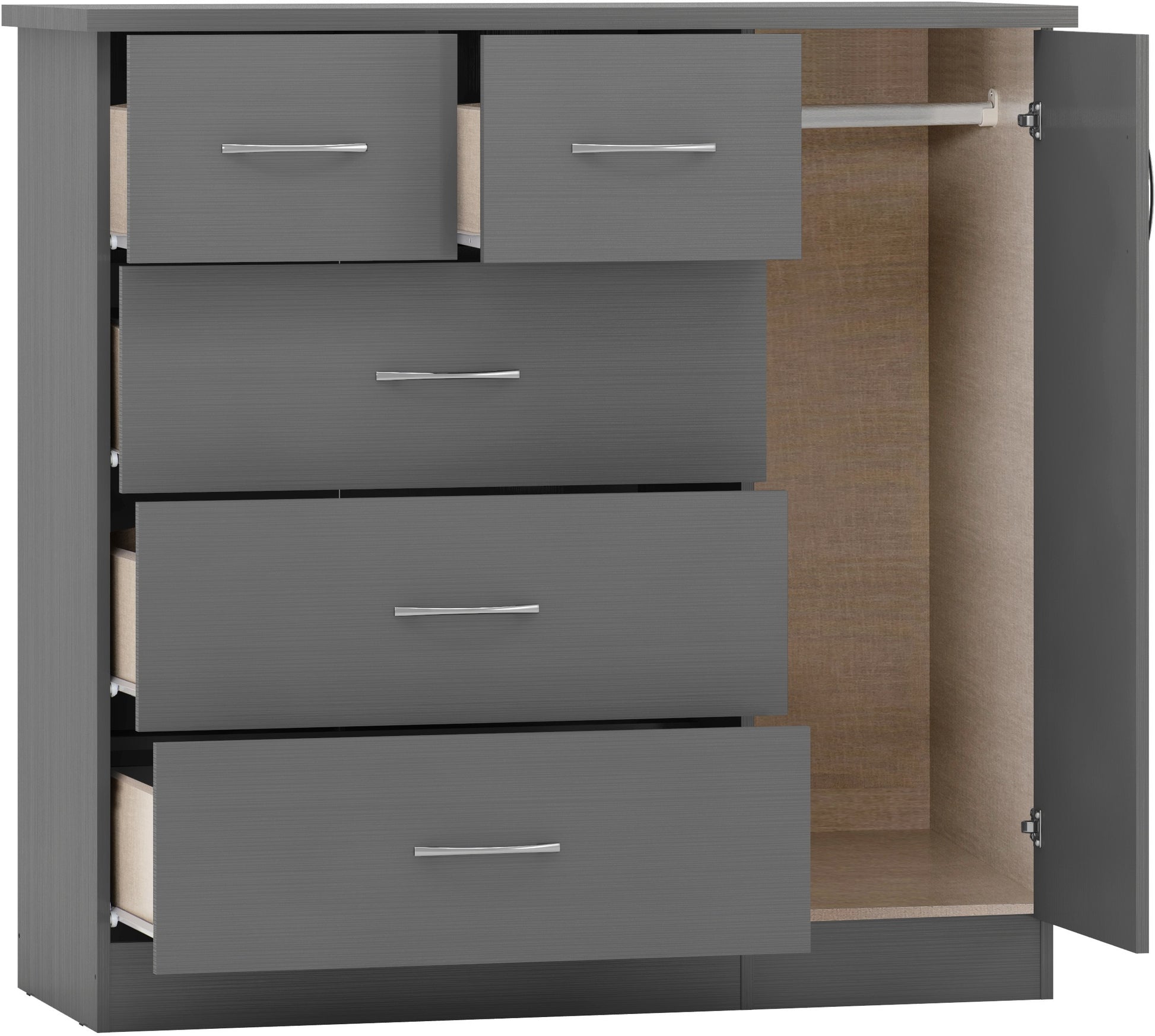 Meet the Nevada 5 Drawer Low Wardrobe finished in 3D Effect Grey-effortless style for everyday living. Built for real homes, it provides smart storage that keeps things tidy so everything has its place. Sturdy by design, it pairs simple lines with a quality feel that lasts.