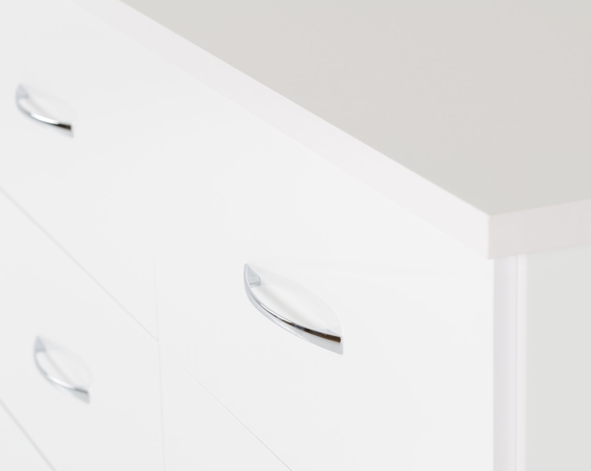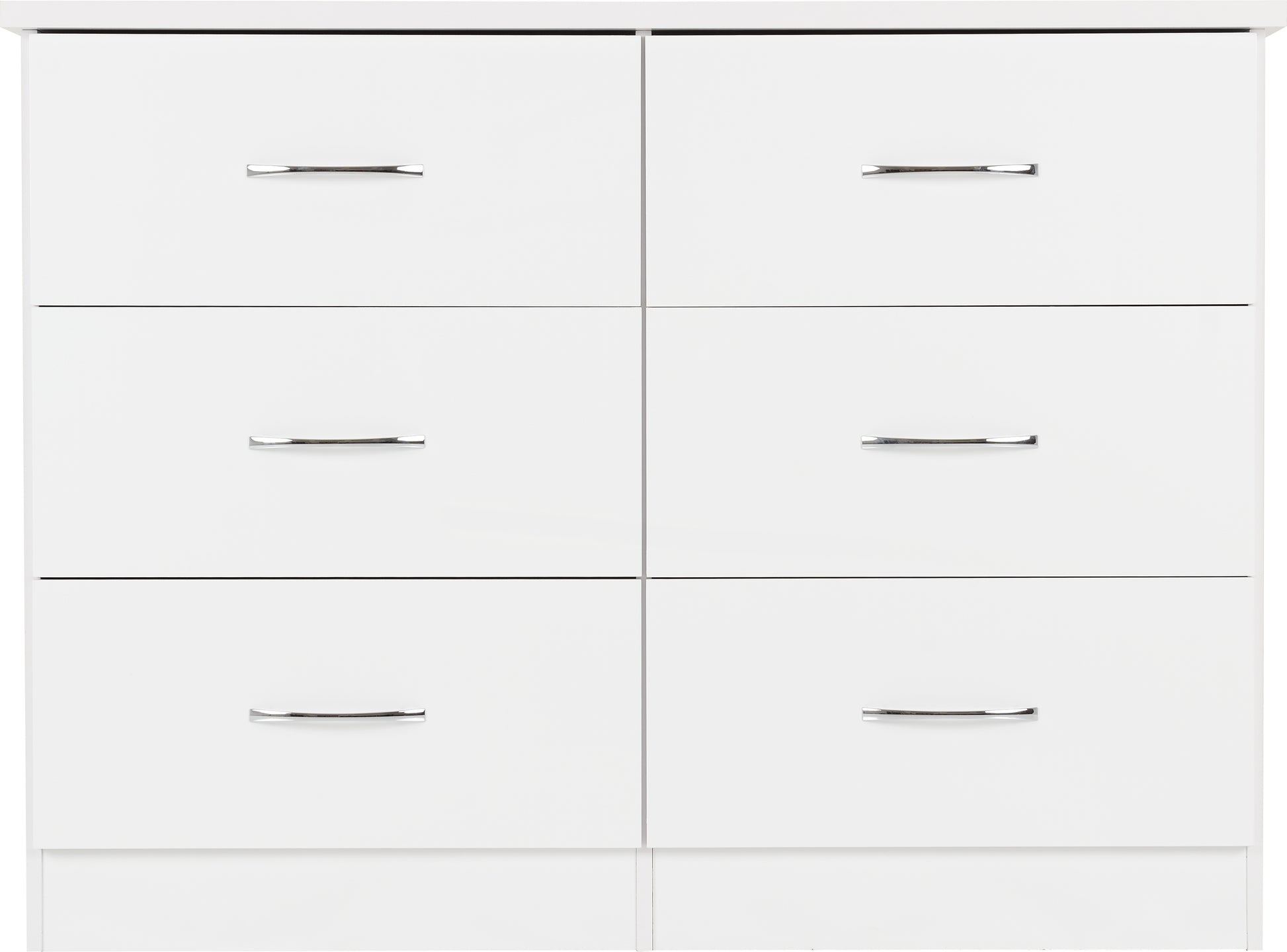 Bring warmth and easy style to your home with the Nevada 6 Drawer Chest showcasing a White Gloss. Practical and good-looking, it delivers smart storage that keeps things tidy without the fuss. Its pared-back look sits comfortably with a range of interiors, from cosy to contemporary.