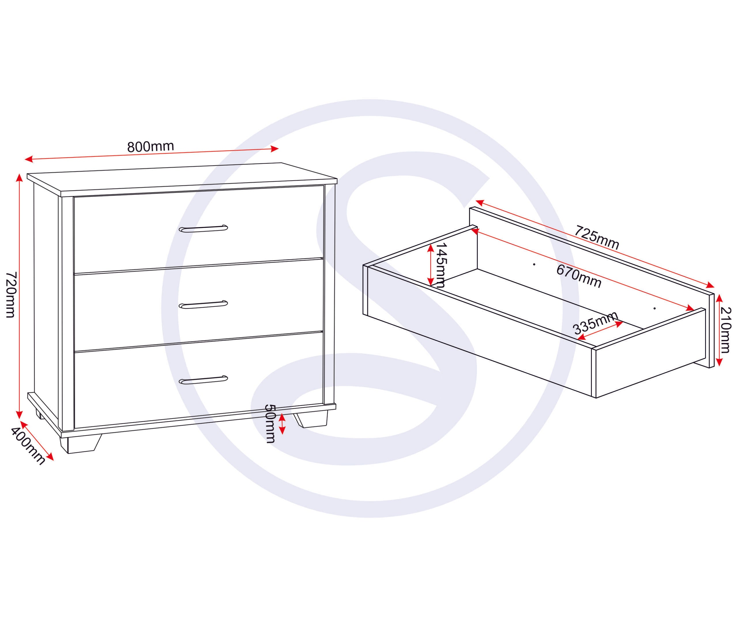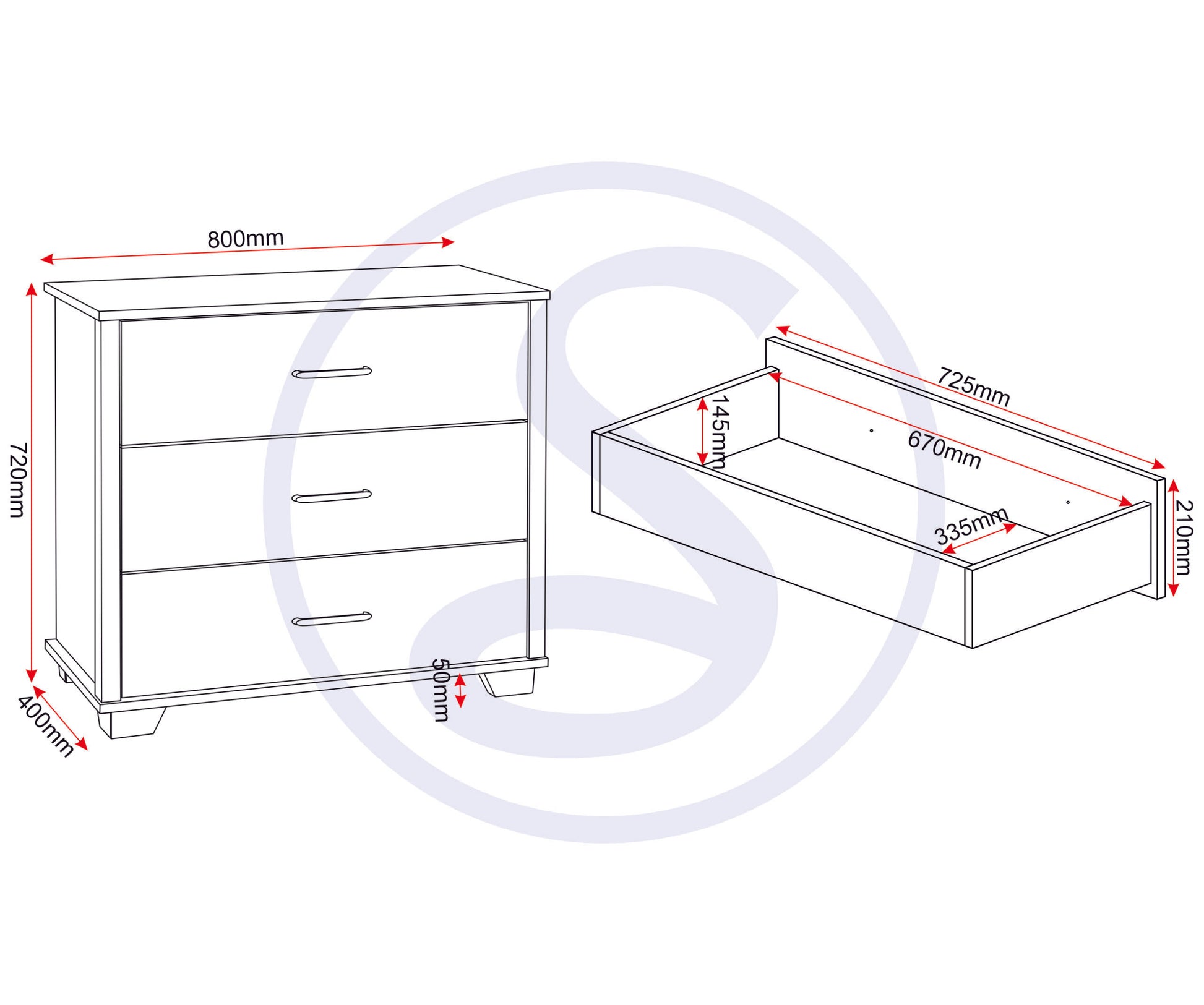 Oliver 3 Drawer Chest - LIGHT OAK EFFECT