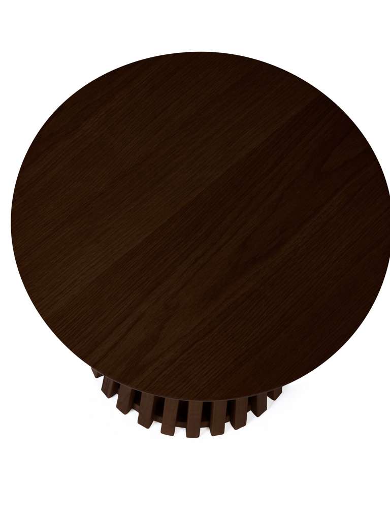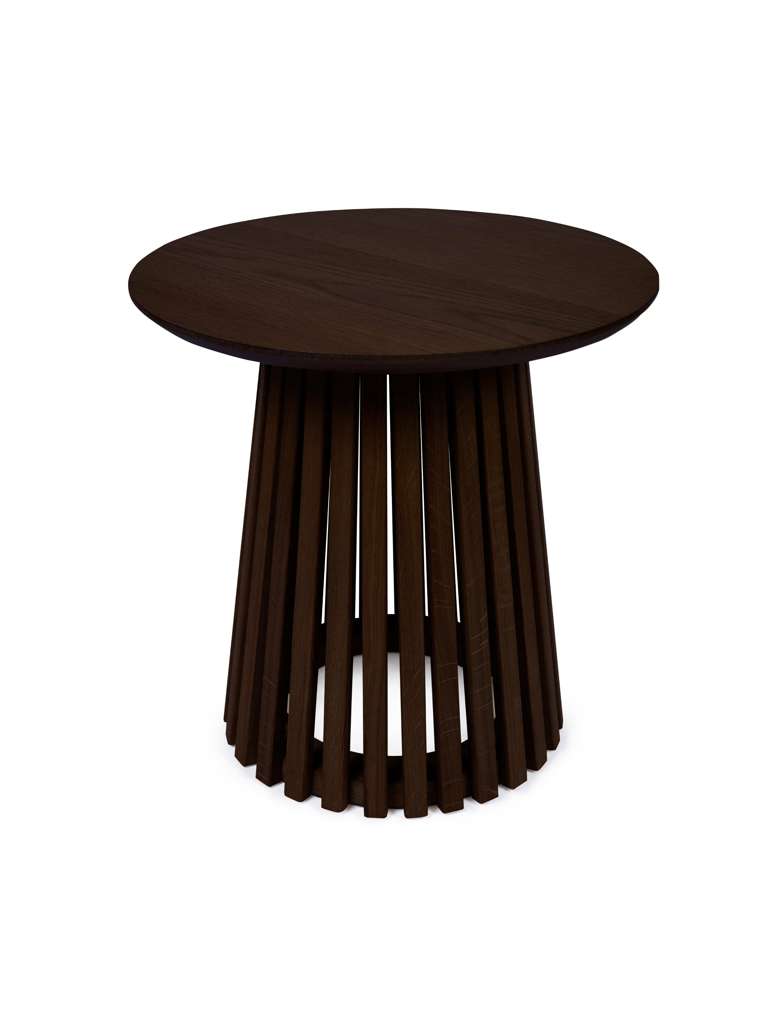 Add a touch of warmth and texture to your space with this round lamp table. Finished in dark oak, the smooth top highlights the rich wood grain and warm tone. Its bold slatted base brings subtle architectural detail while keeping the design light and open. Compact and versatile, it's ideal beside a sofa, bed or reading chair.