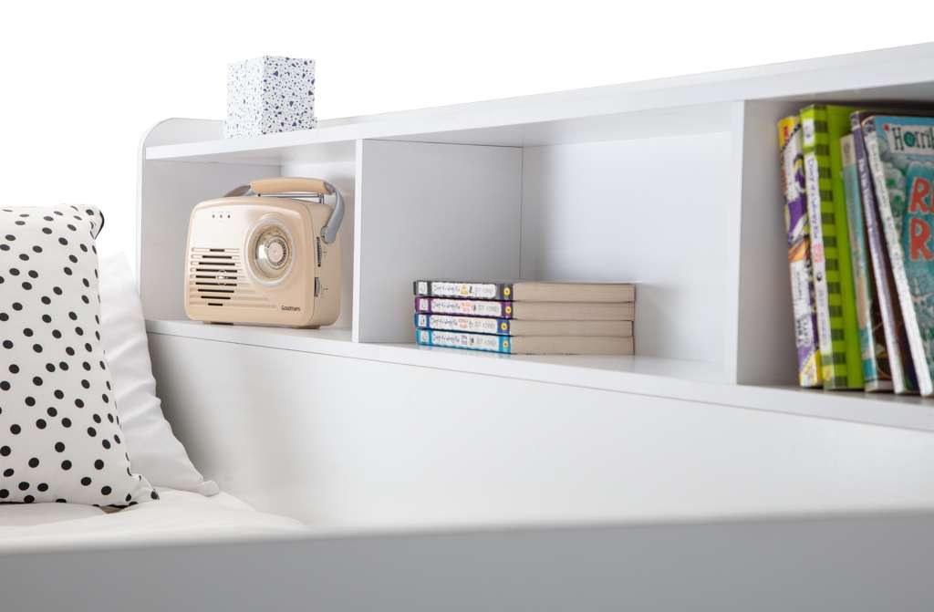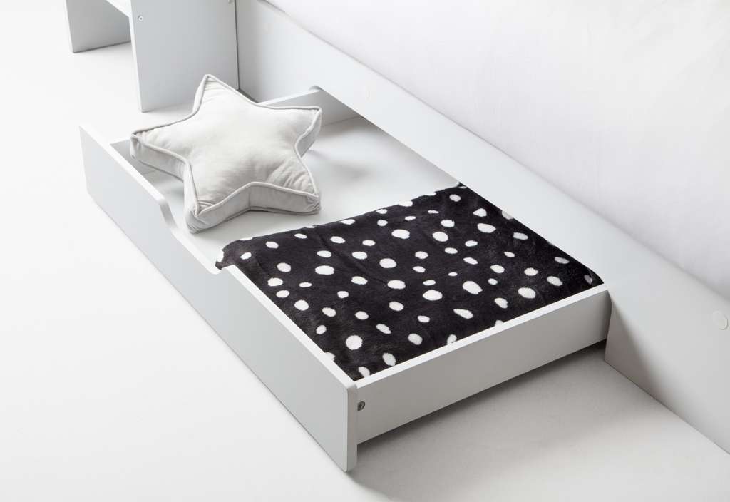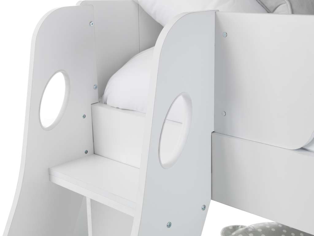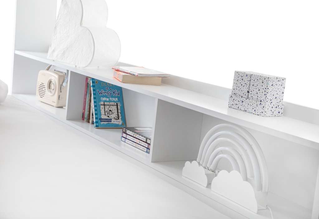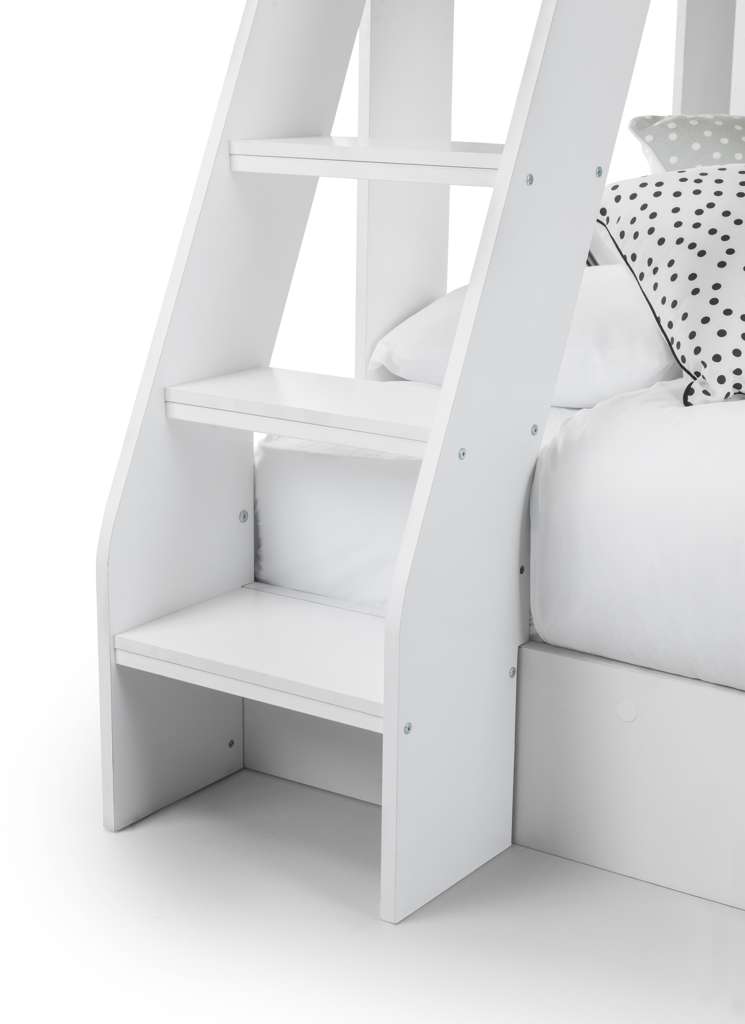 The Orion Triple Bunk is available in a modern Anthracite or White finish and combines contemporary style with clever functionality. Designed with a single bed on the top bunk and a small double on the bottom, it comfortably sleeps up to three childrenâor adults if used as a guest bed. Practical features include a handy pull-out drawer and generous shelving space for books, toys, and other essentials, all with a raised lip to prevent items from slipping behind. The sturdy ladder features stylish cut-out handles and optional glow-in-the-dark strips on the steps for added safety and ease of use.