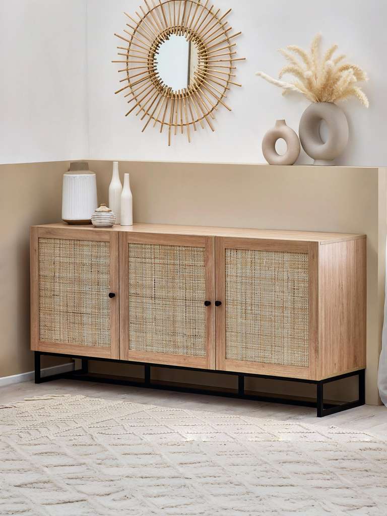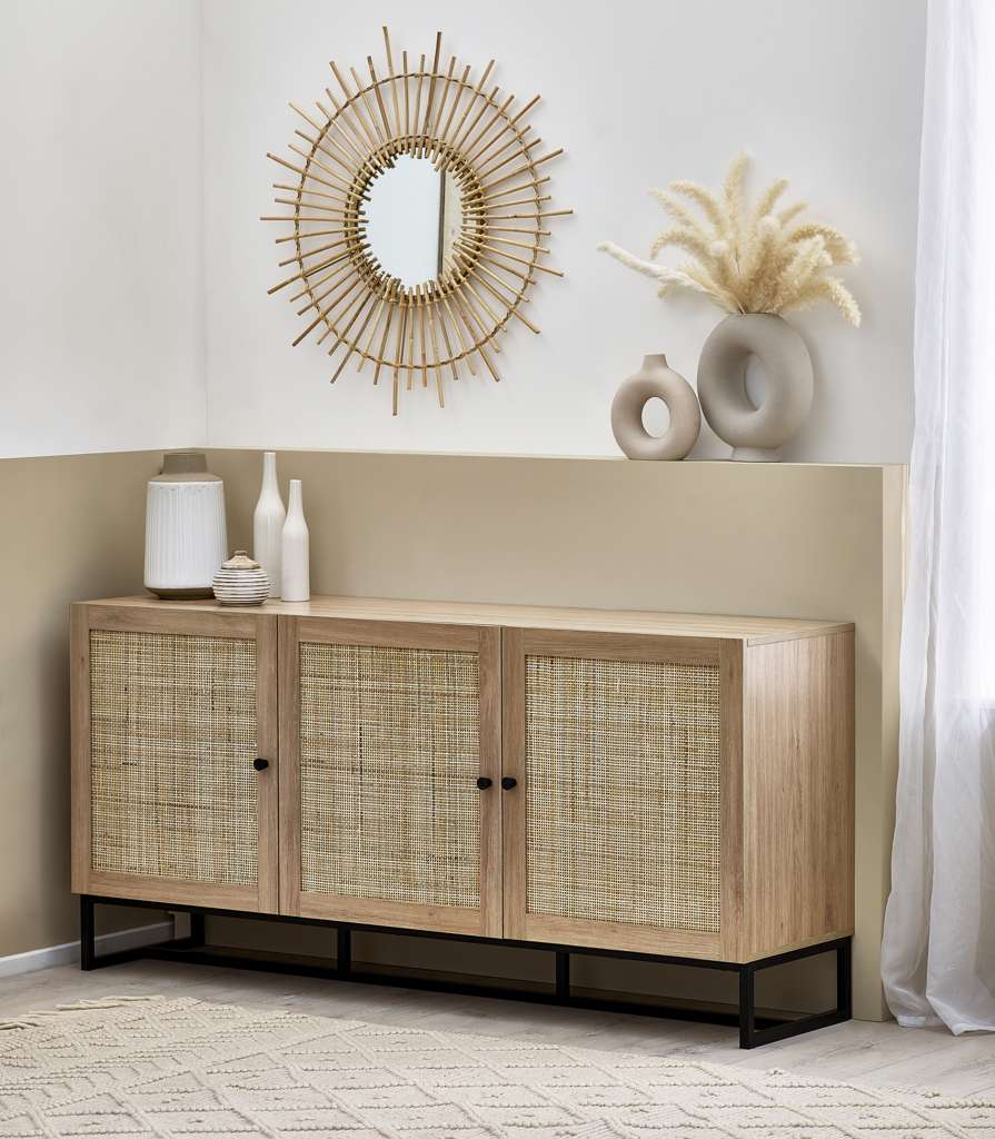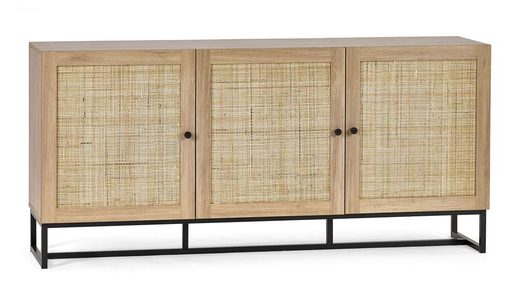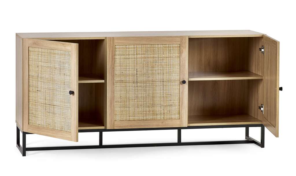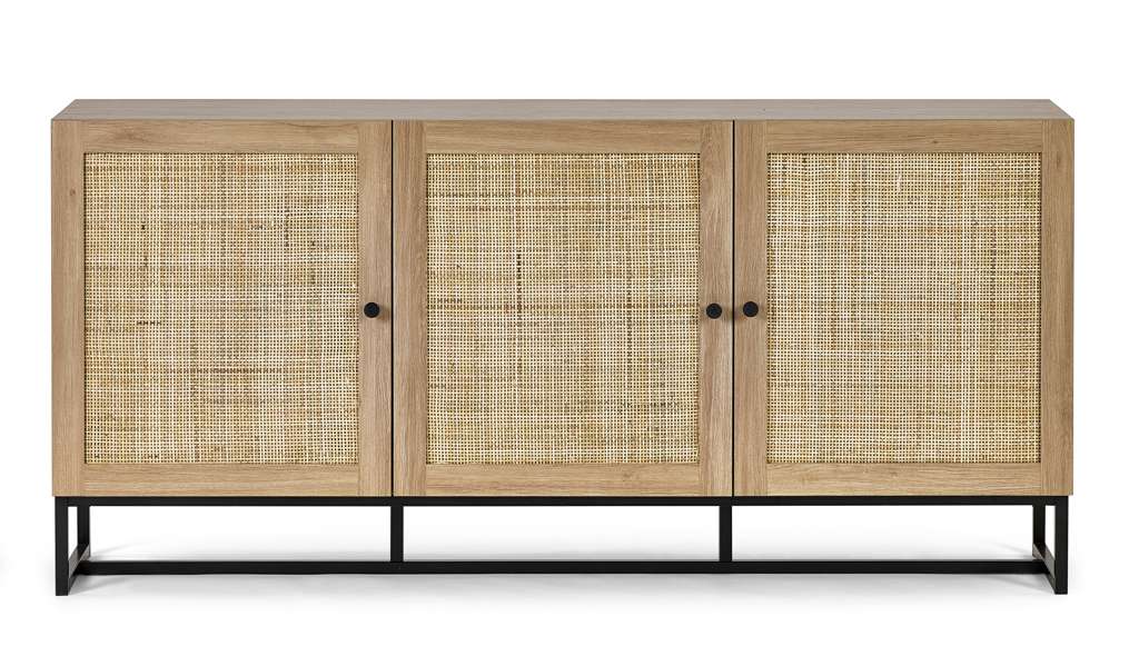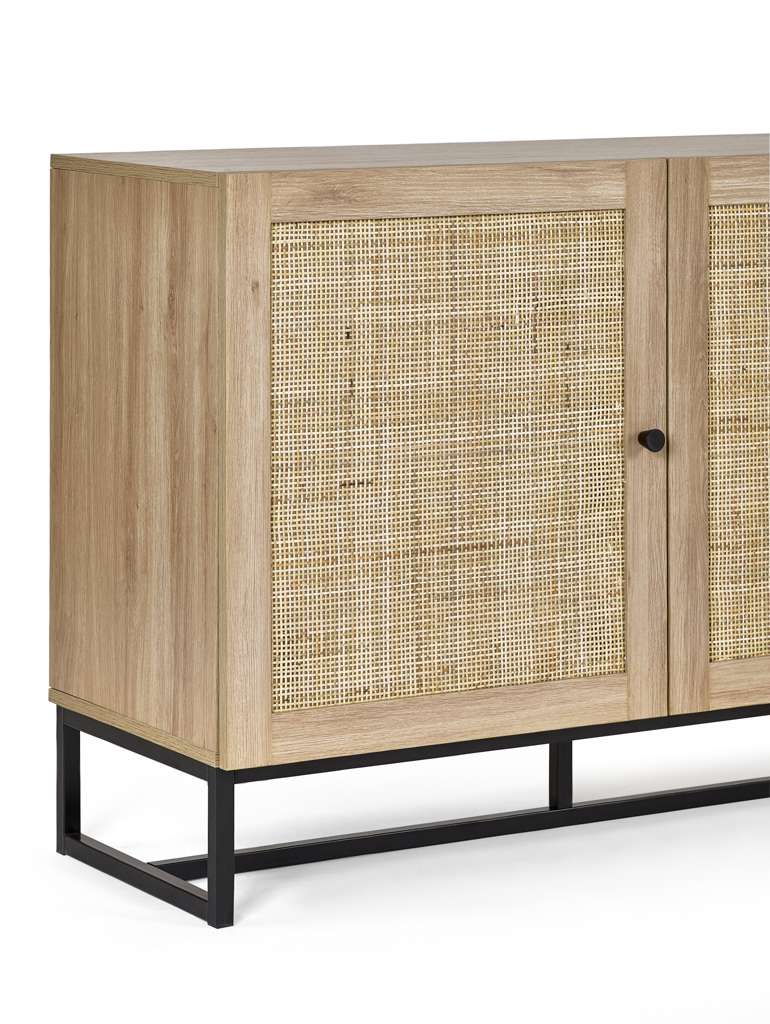 Fusing modern construction with retro design elements, the Padstow collection will exquisitely complement any styled home. The natural rattan fronts and industrial-style base collaborate perfectly to leave a warm yet chic aesthetic in your home. This range includes a bedside, 3 drawer chest, 6 drawer chest, wardrobe, coffee table, TV unit, sideboard, and tall bookcase. Also available in a black finish.