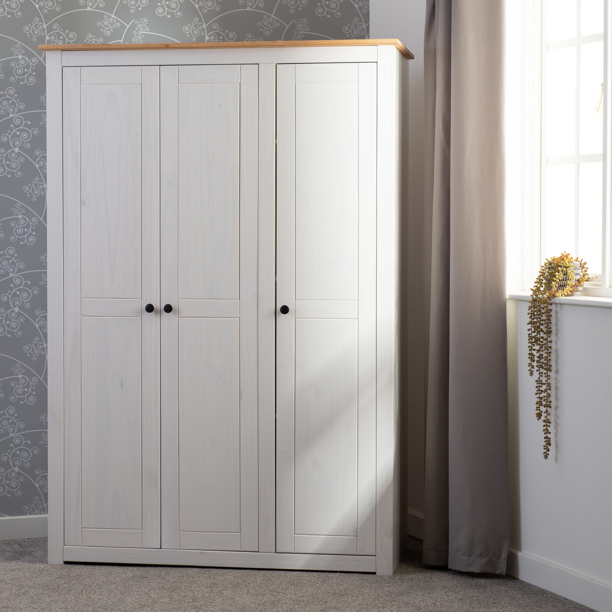 - Panama 3 Door Wardrobe - White/Natural Wax