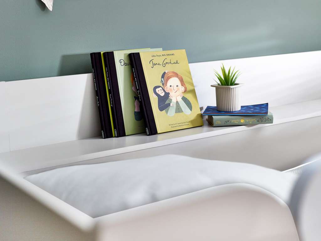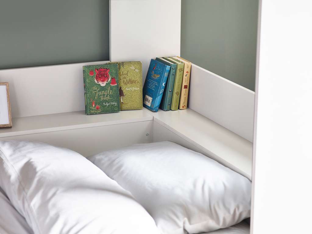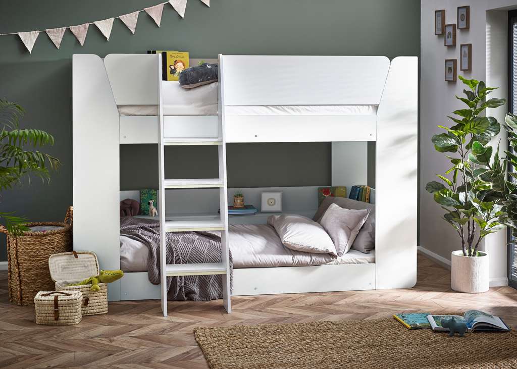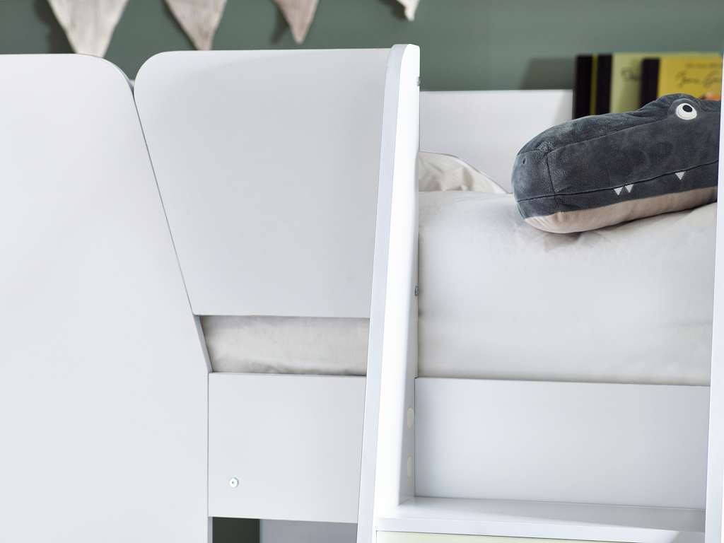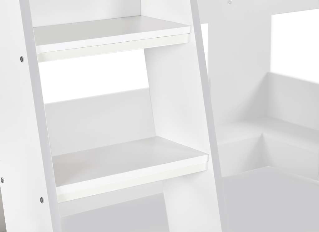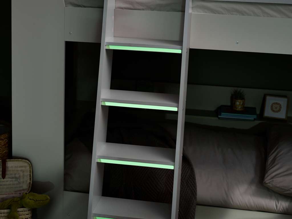 This gorgeous-designed, Parsec Bunk Bed is applicably constructed for convenience and durability. Features sturdy all-white construction with a robust angled ladder including glow-in-dark steps. Making it an enchanting option for little ones.