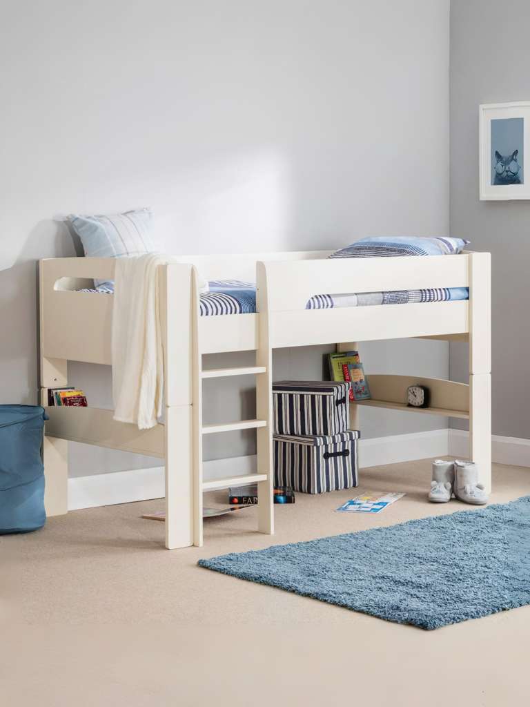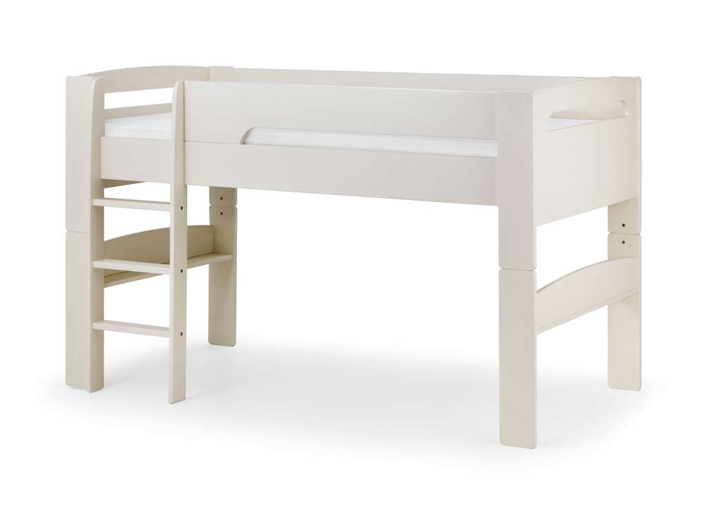 Pluto Midsleeper is a sturdy and stylish mid-sleeper finished in a smooth stone white lacquer. Pluto's contemporary design is accompanied by great functionality, with a robust ladder that can be assembled on either left or right and the capacity to convert to a single bed if required at any time in the future. It can be used on its own or paired with the extensive Julian Bowen Cameo Bedroom collection, while pairing it with the Pluto Star Tent (sold separately) in either pink or blue will turn the Pluto mid-sleeper into a fun and vibrant play space for kids to enjoy.