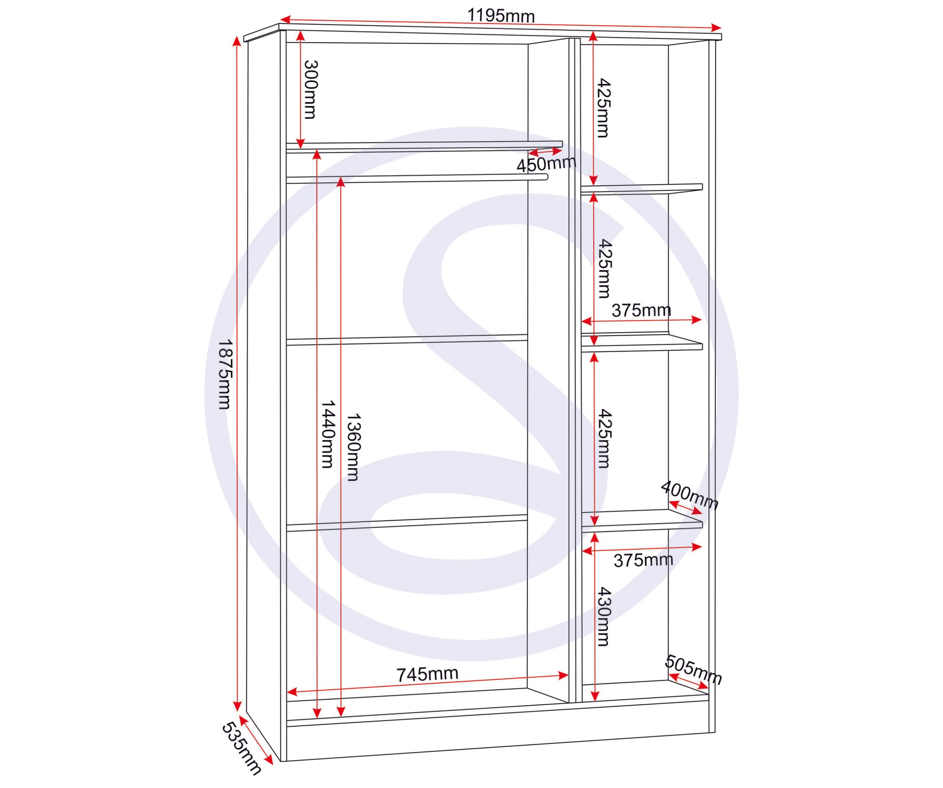 Portland 3 Door Wardrobe - WHITE/OAK EFFECT