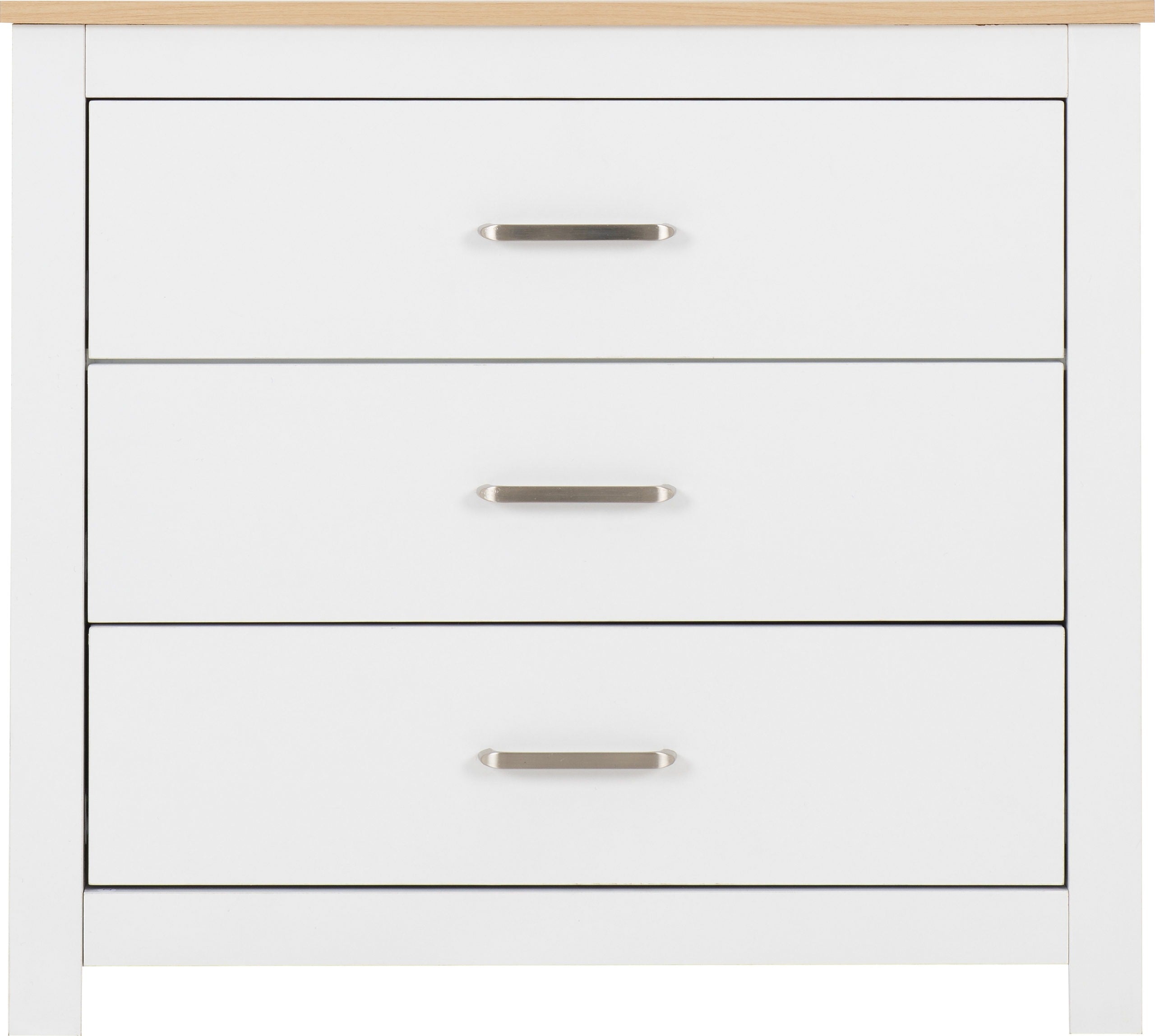 Make space feel calm and considered with the Portland 3 Drawer Chest showcasing a White/Oak Effect. Everyday-friendly and tidy, it offers plenty of room to keep everything organised you'll use from day one. Its pared-back look sits comfortably with a range of interiors, from cosy to contemporary.