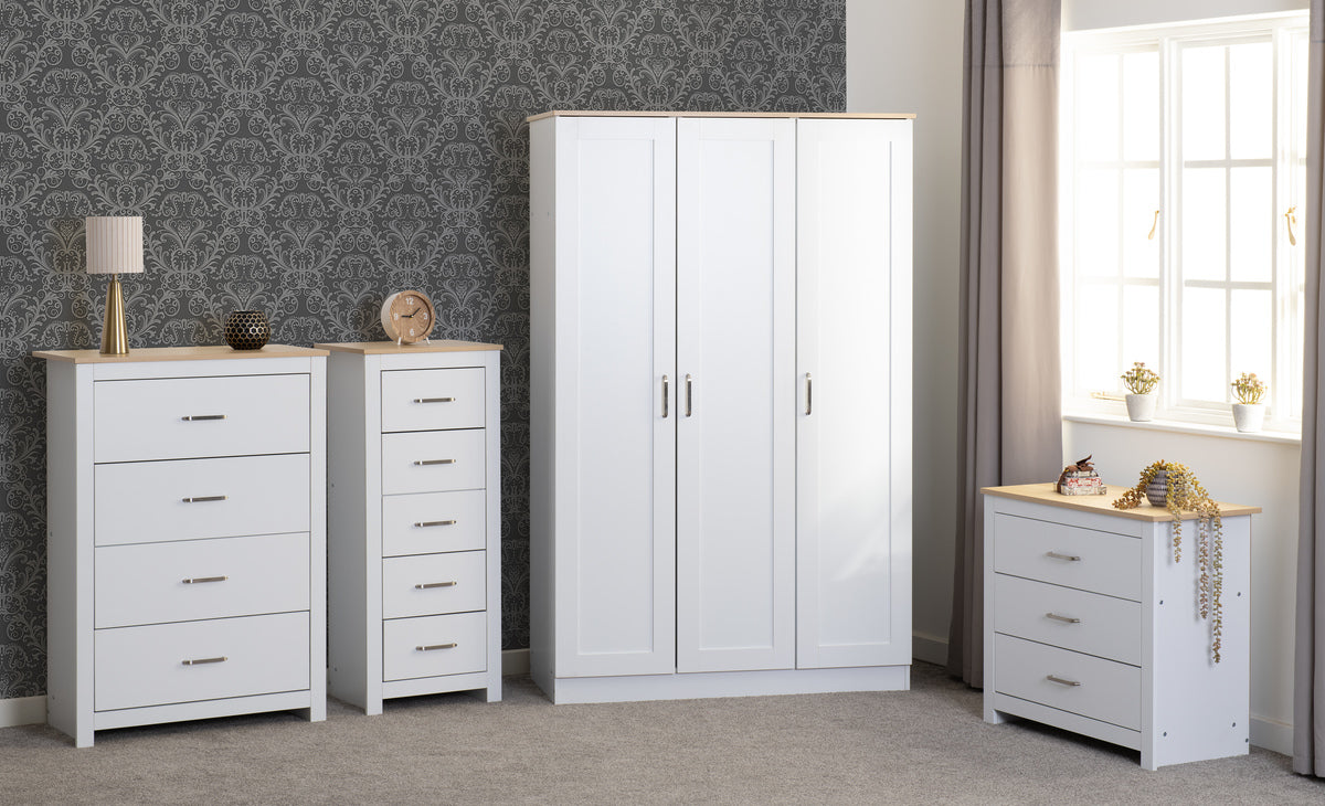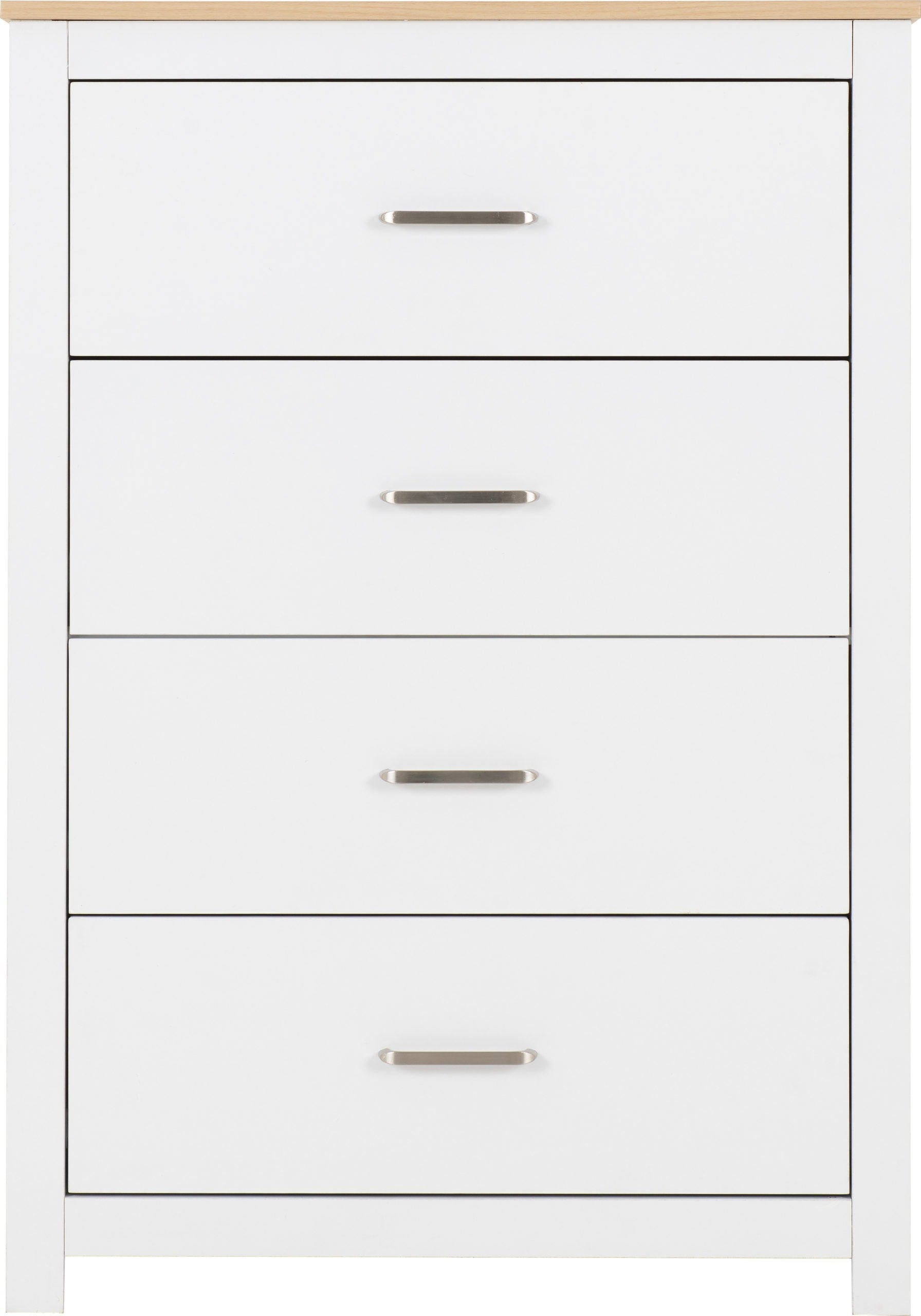 The Portland 4 Drawer Chest wrapped in a White/Oak Effect adds a homely touch with a modern edge. Built for real homes, it provides plenty of room to keep everything organised so everything has its place. Its pared-back look sits comfortably with a range of interiors, from cosy to contemporary.