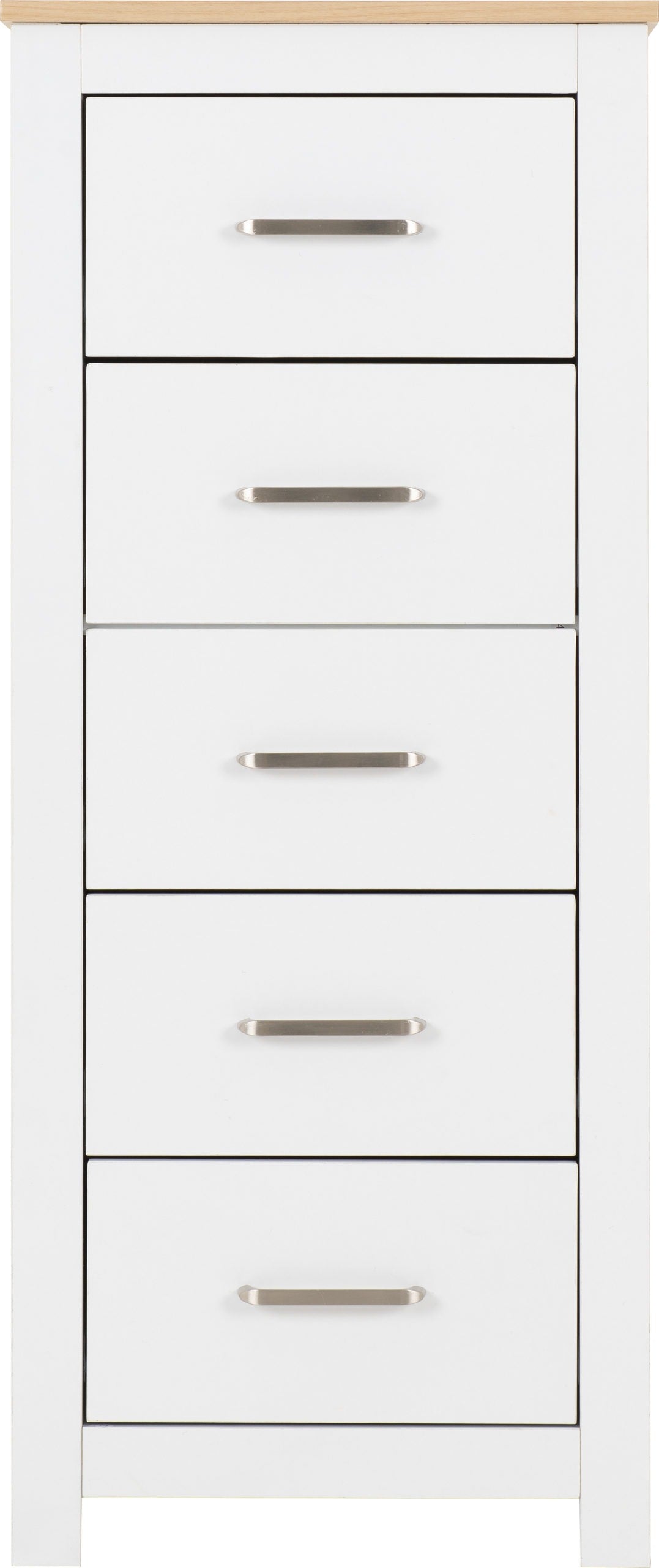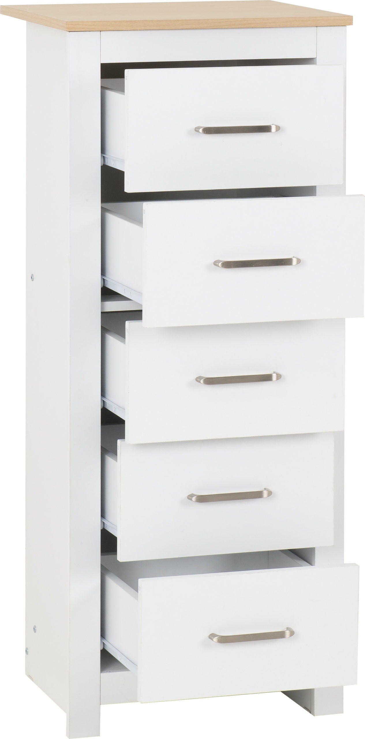 Portland 5 Drawer Narrow Chest - White/Oak Effect