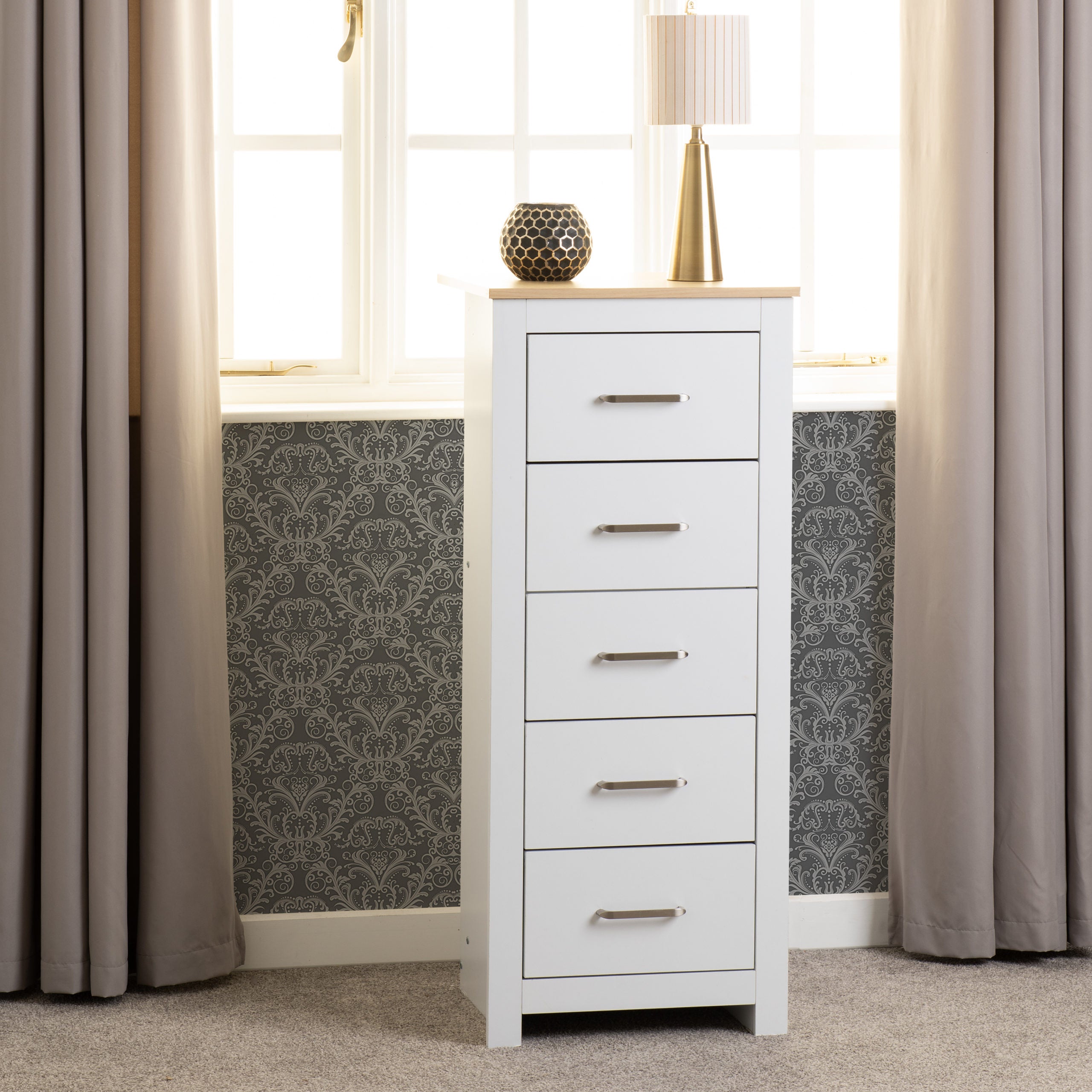 - Portland 5 Drawer Narrow Chest - White/Oak Effect