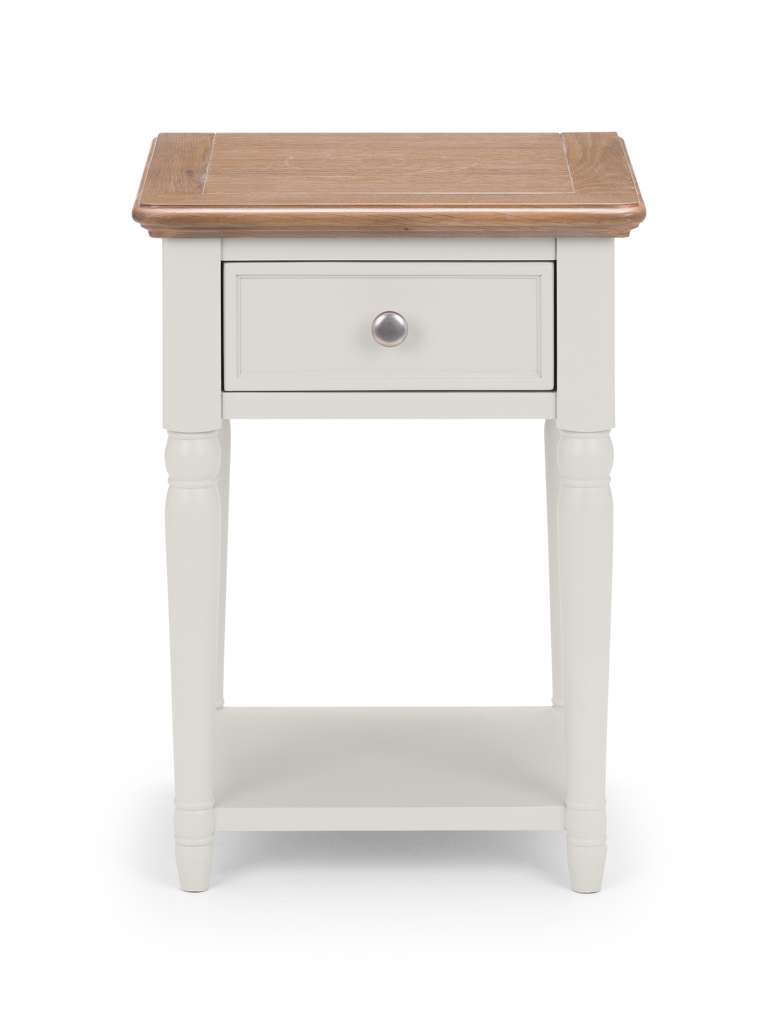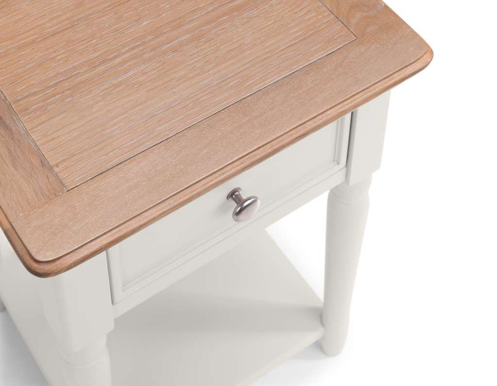 This timeless lamp table offers an authentic antique design with a classic turned leg detail perfect for contemporary spaces as well as traditional homes. Finished in a grey lacquer with a limed oak effect top, the Provence features additional storage with a drawer, the perfect size for storing controllers or magazines. Part of the Provence dining and occasional collection, this dining table becomes a stunning set when paired with the Provence dining chairs.
