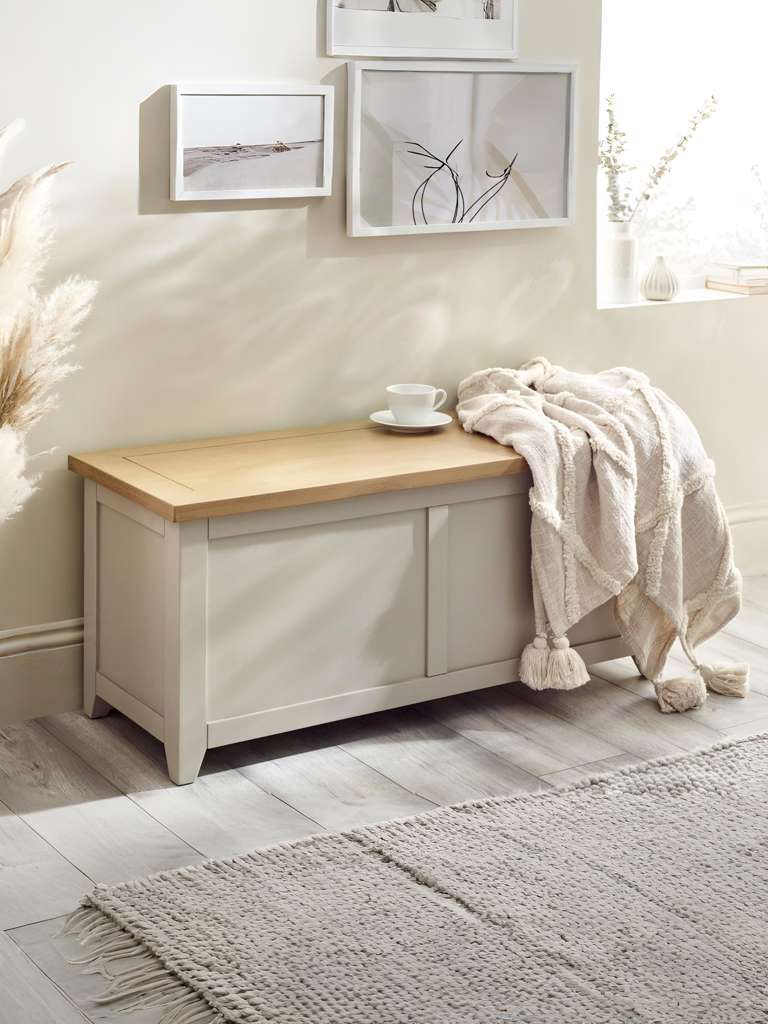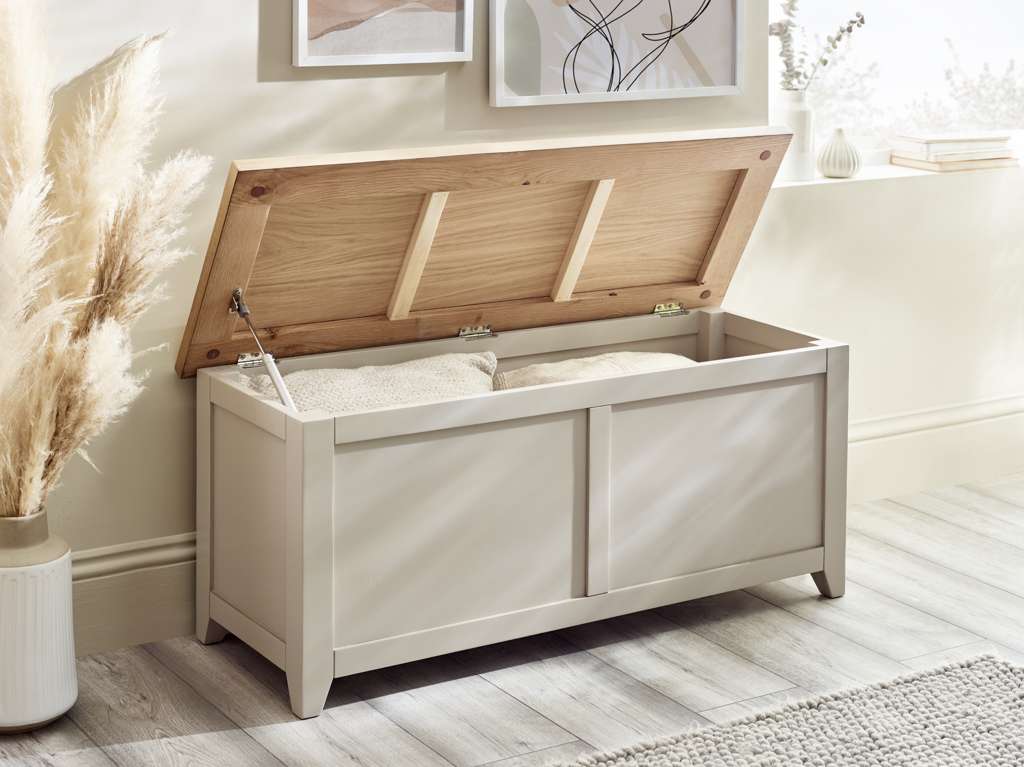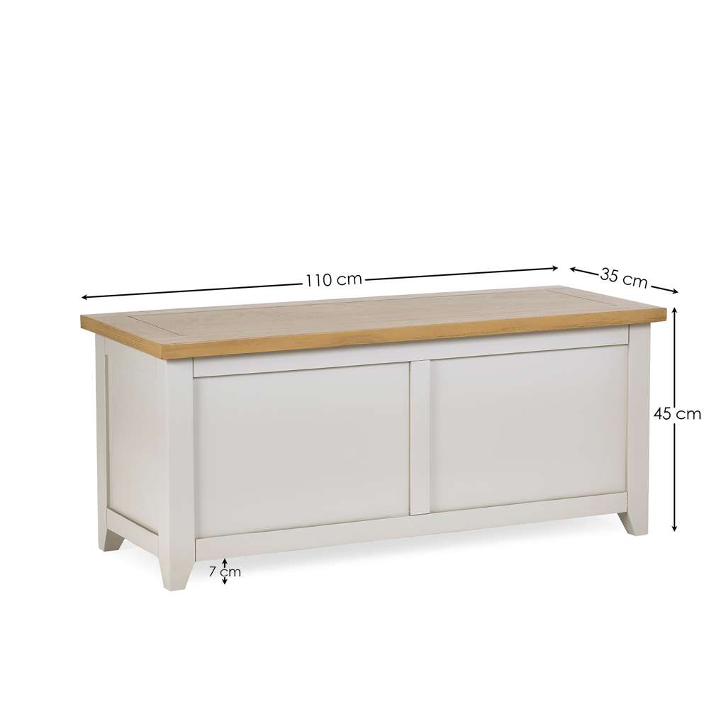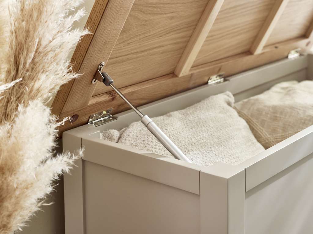 Designed with practicality in mind, the Richmond storage bench features a spacious storage compartment beneath the seat. Perfect for stowing away shoes, blankets, or other household items, this storage solution helps you maintain a clutter-free environment. The hinged lid allows for easy access to your belongings while providing a comfortable seating surface. The neutral color palette and versatile design make this storage bench a seamless addition to various interior styles. Whether you're aiming for a modern, farmhouse, or transitional look, this bench effortlessly adapts to your decor.
