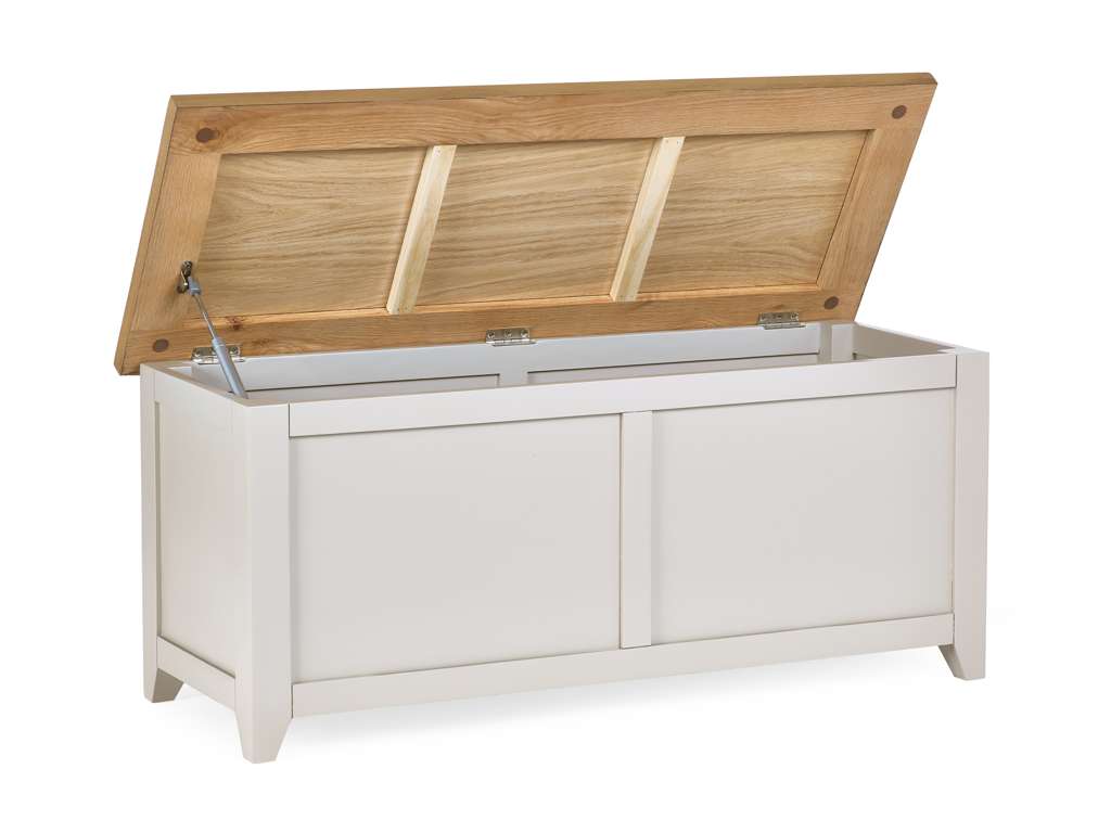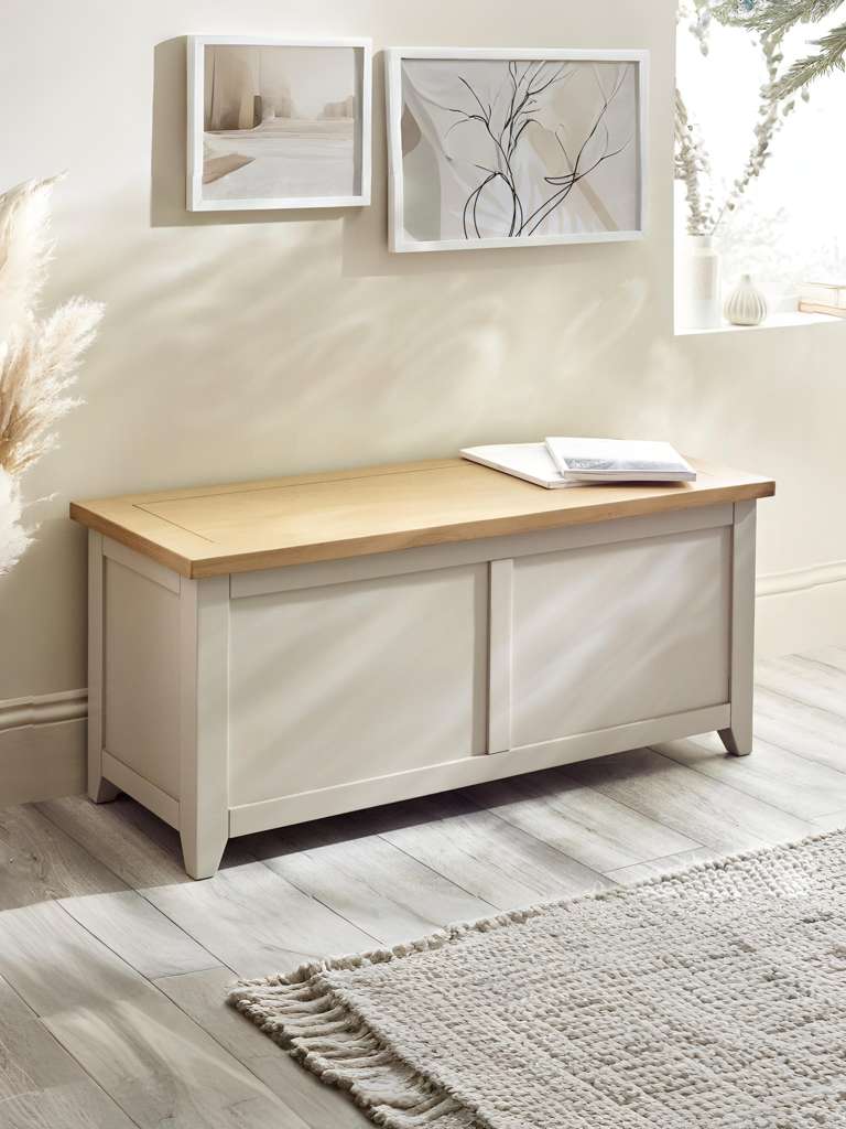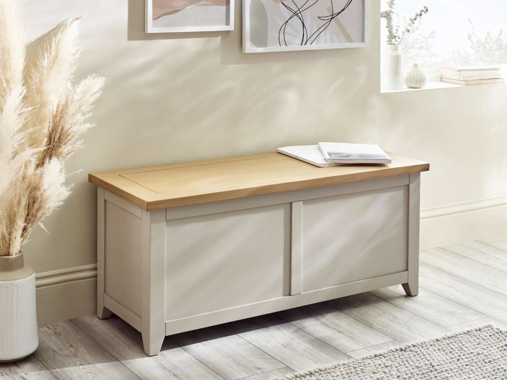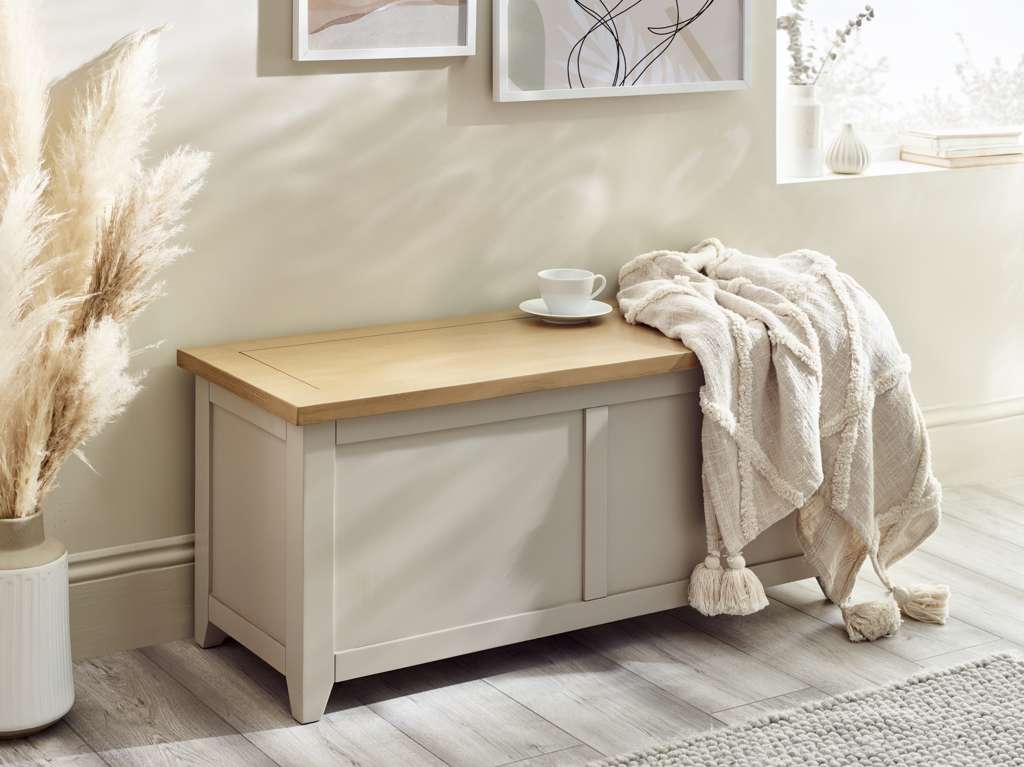 Designed with practicality in mind, the Richmond storage bench features a spacious storage compartment beneath the seat. Perfect for stowing away shoes, blankets, or other household items, this storage solution helps you maintain a clutter-free environment. The hinged lid allows for easy access to your belongings while providing a comfortable seating surface. The neutral color palette and versatile design make this storage bench a seamless addition to various interior styles. Whether you're aiming for a modern, farmhouse, or transitional look, this bench effortlessly adapts to your decor.