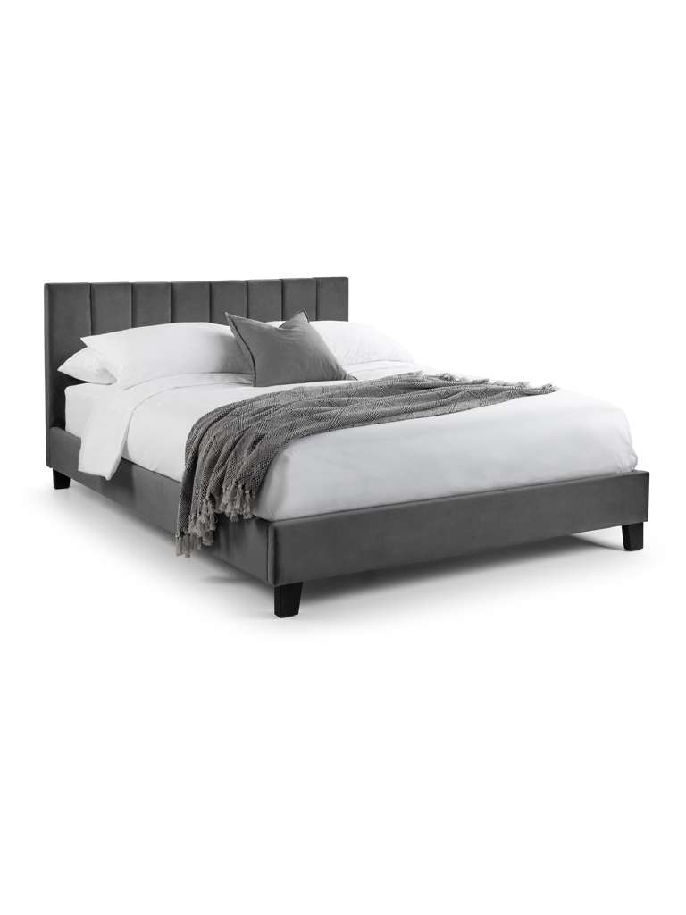 Featuring a gorgeous fluted headboard, the Rosa Velvet Bed exudes style and comfort. Finished in an attractive grey velvet with black legs makes it the perfect focal point in any bedroom.