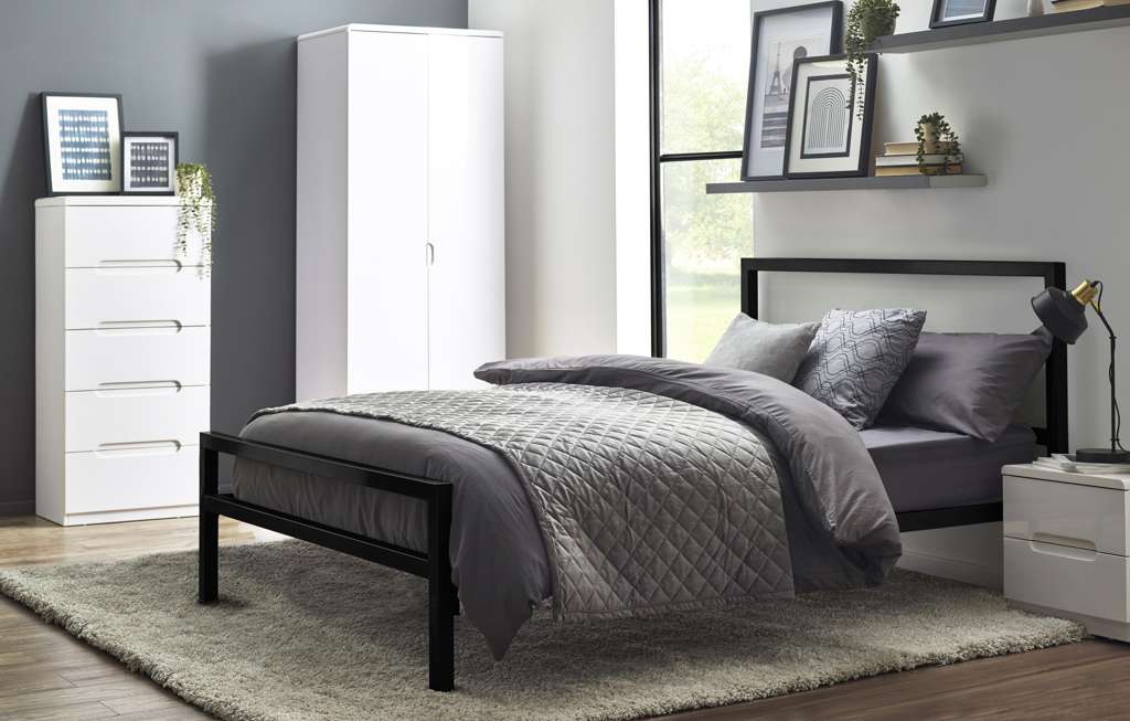 Discover the Soto Metal 120cm Small Double Bed in Satin Blackâa perfect blend of sleek design and robust durability. This metal bed features clean lines and a striking satin black finish, complementing any décor style. The sturdy metal frame and base ensure exceptional support and longevity for a restful night's sleep. Easy to assemble, it is ideal for guest rooms or small apartments. Mattress sold separately.