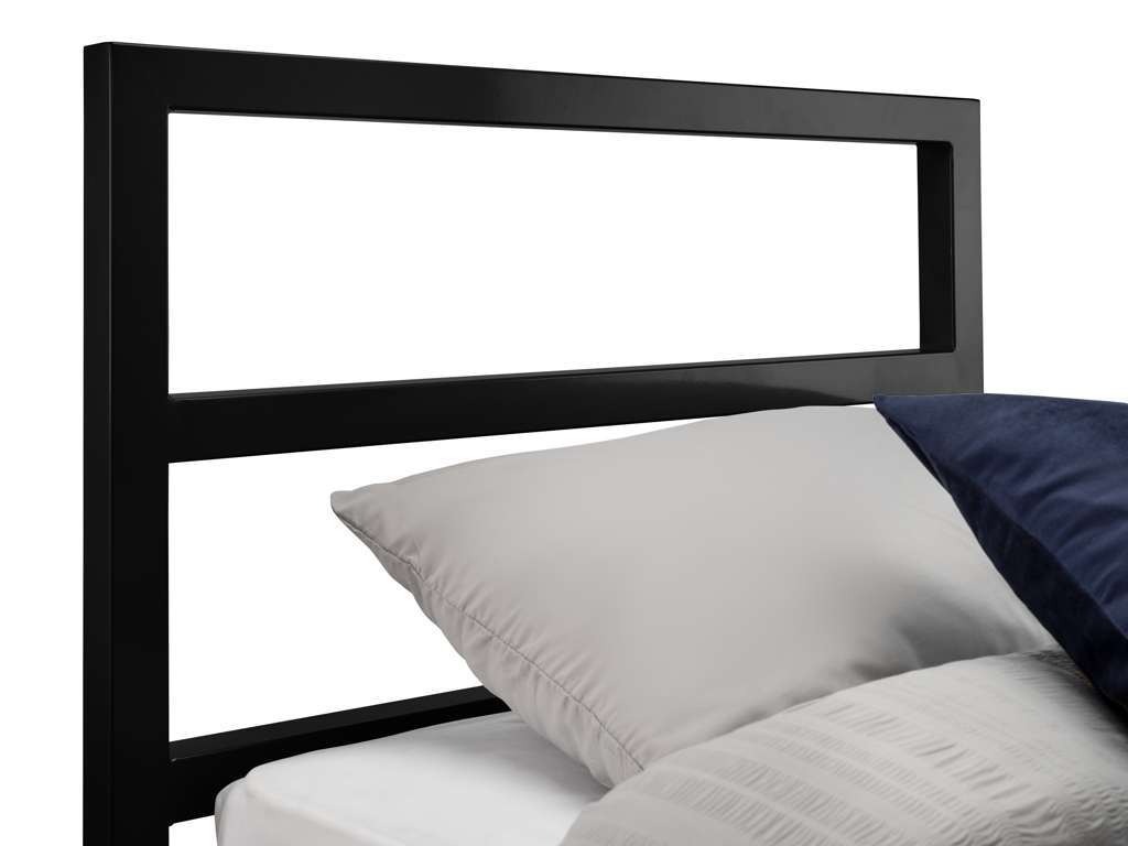Transform your bedroom with the Soto Metal 135cm Double Bed in Satin Blackâa stylish and durable choice for contemporary living. Featuring a sleek design and a robust metal frame with a sturdy base, it offers both exceptional support and timeless elegance. Built to last, ensuring a comfortable and restful nightâs sleep. Minimal assembly is required. Mattress sold separately.