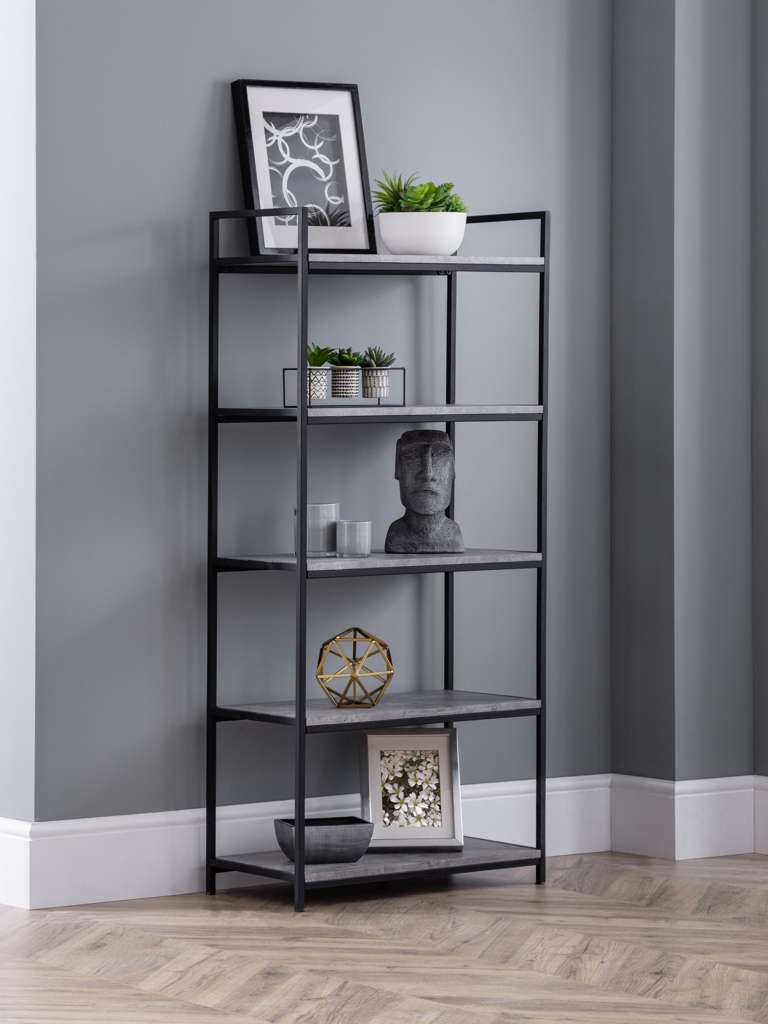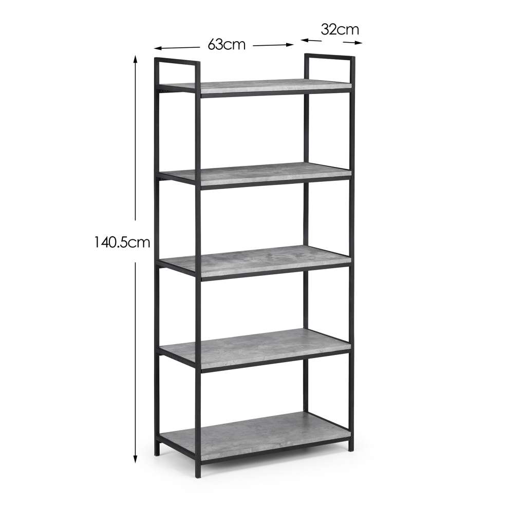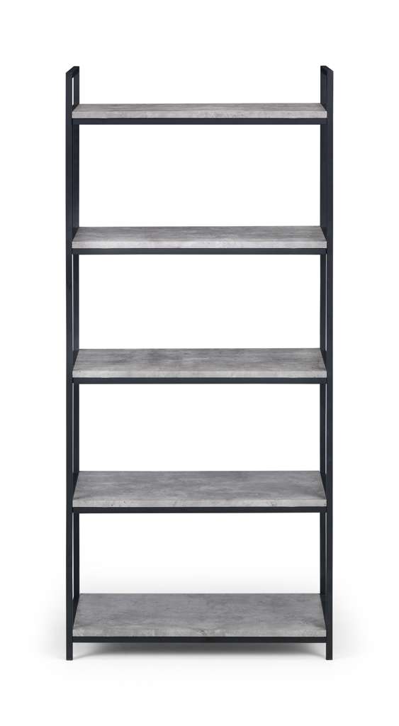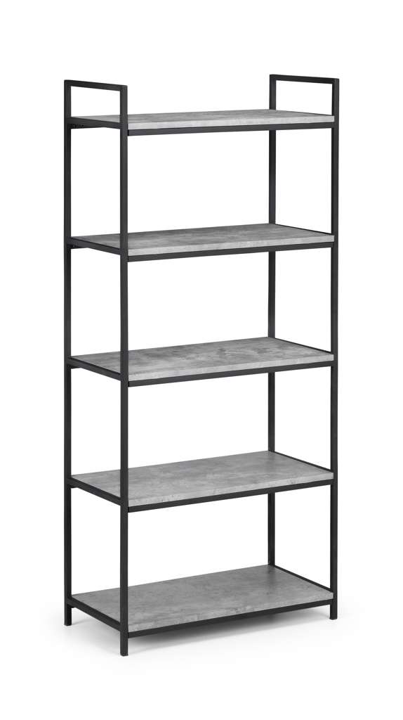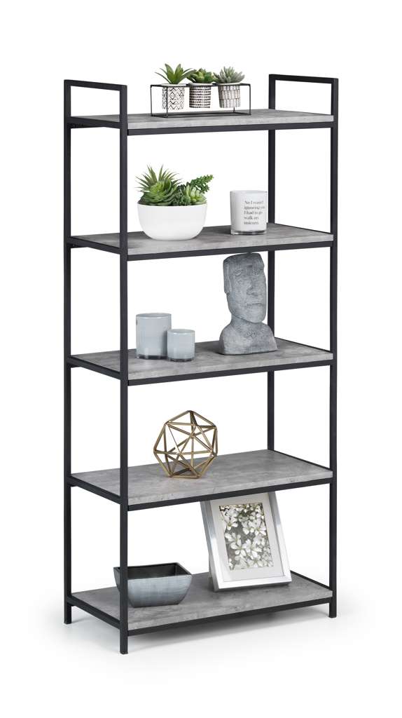 Simplistic in design with a contemporary style, the Staten Tall Bookcase will add a stunning industrial look to any living and dining area. Constructed from a black coated metal frame, complemented by a striking concrete effect tops, to create a very stylish, modern product. Part of the Julian Bowen Staten Dining and Occasional Collection.