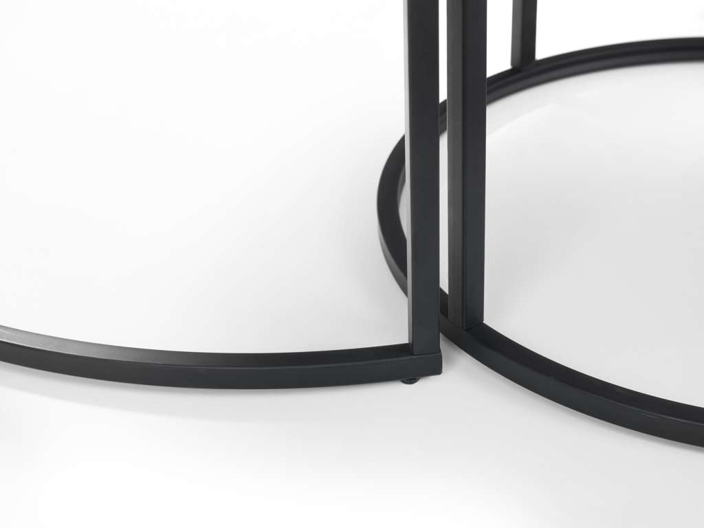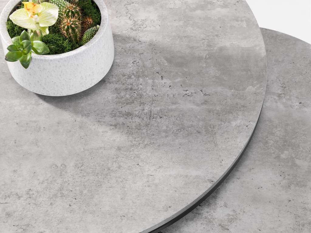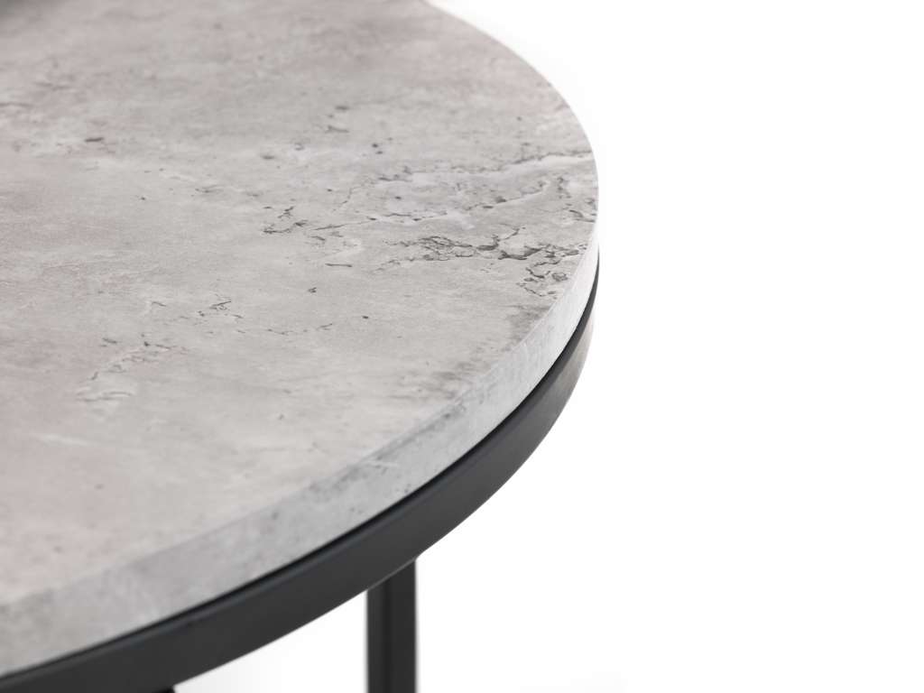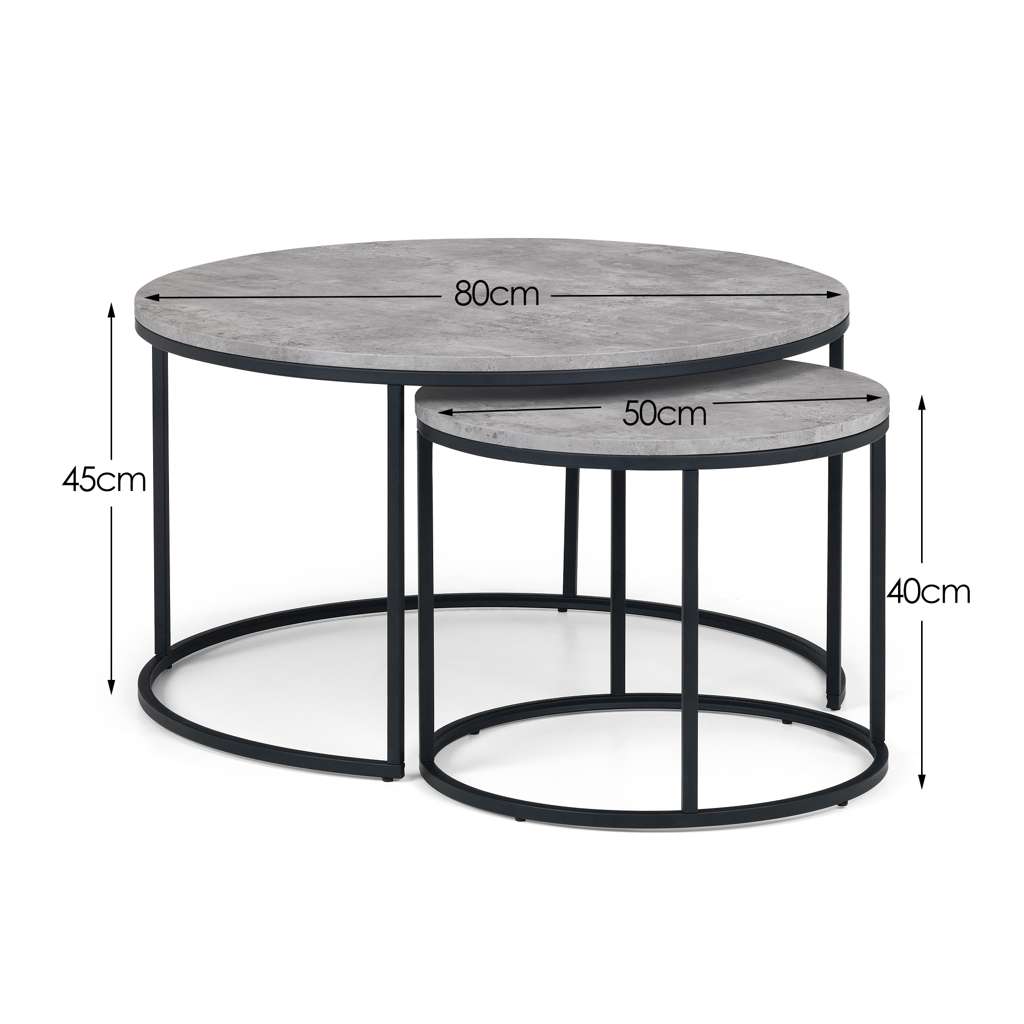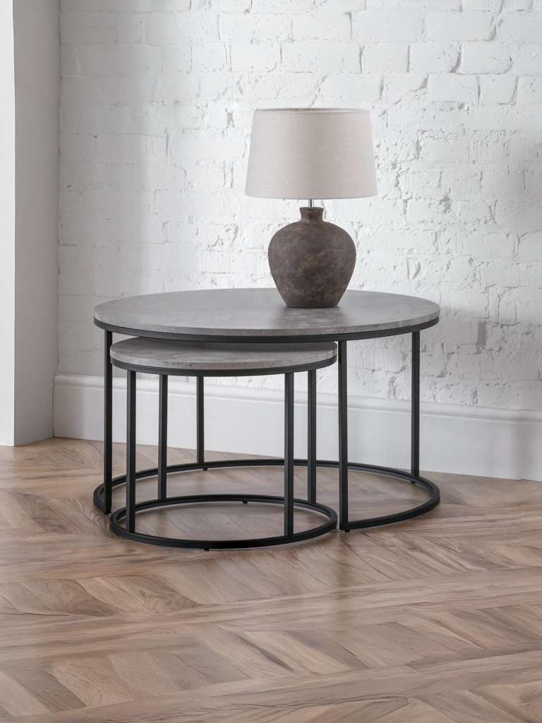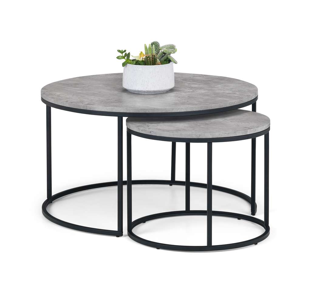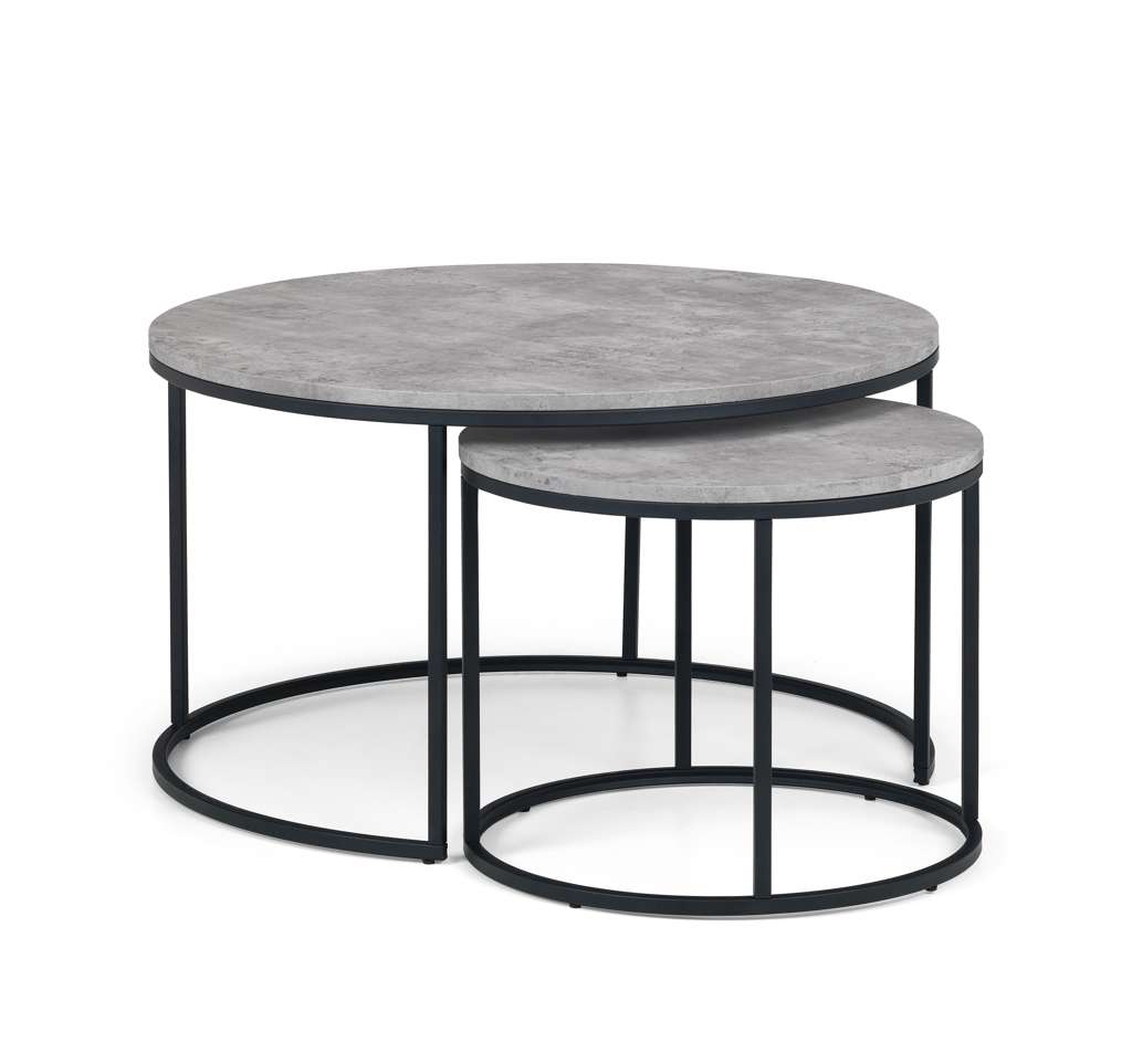 Simplistic in design with a contemporary style, the Staten Round Nesting Coffee Tables will add a stunning industrial look to any living and dining area. Constructed from a black coated metal frame, complemented by a striking concrete effect tops, to create a very stylish, modern product. Part of the Julian Bowen Staten Dining and Occasional Collection.
