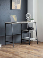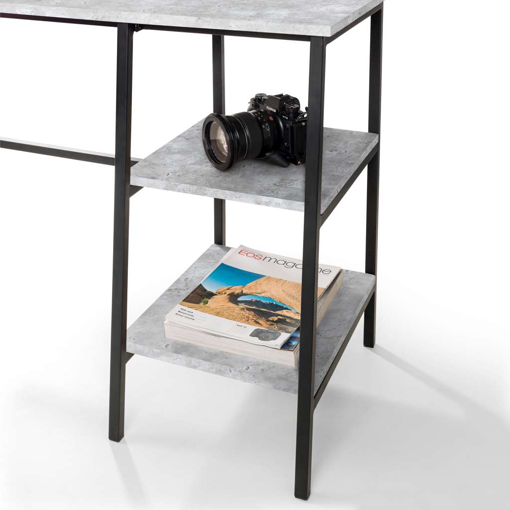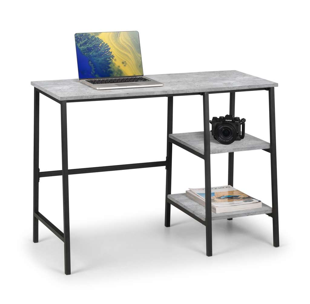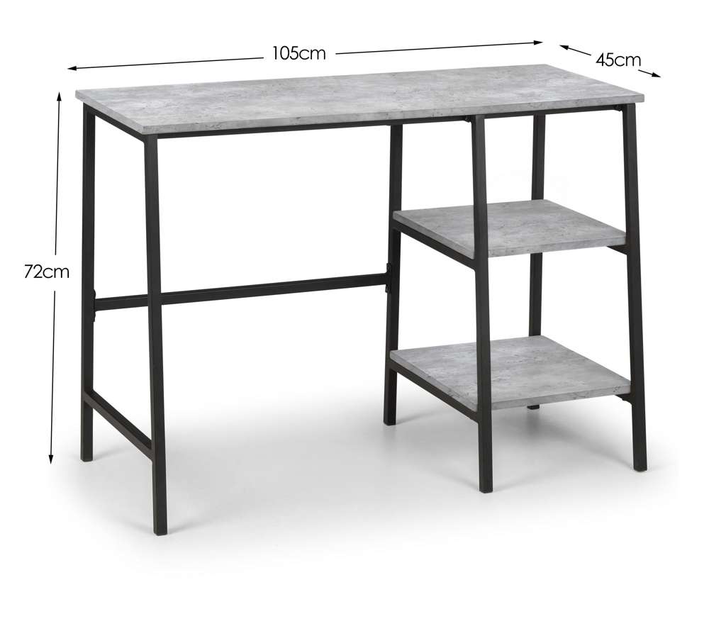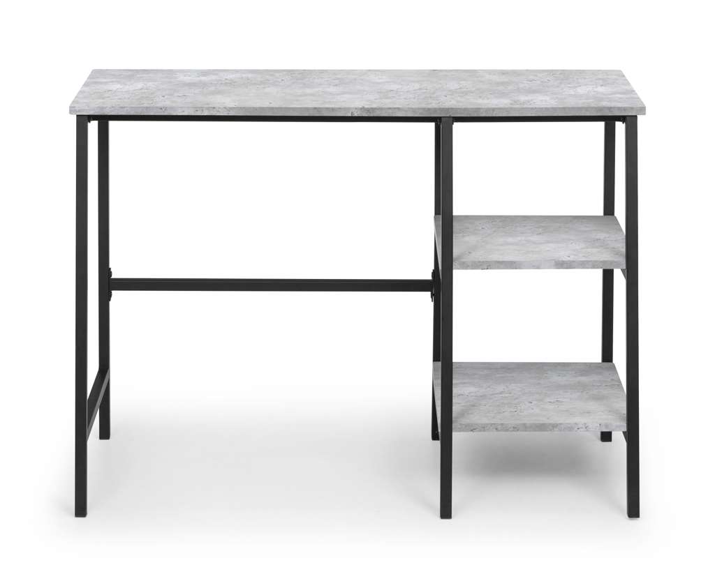 Simplistic in design with a contemporary style, the Staten Desk will add a stunning industrial look to any home office. Constructed from a black coated metal frame, complemented by a striking concrete effect tops, to create a very stylish, modern product. Part of the Julian Bowen Staten Dining and Occasional Collection.