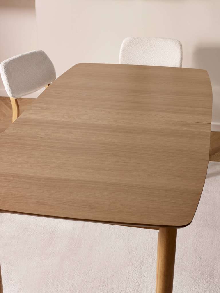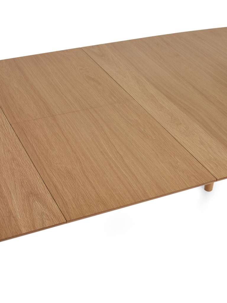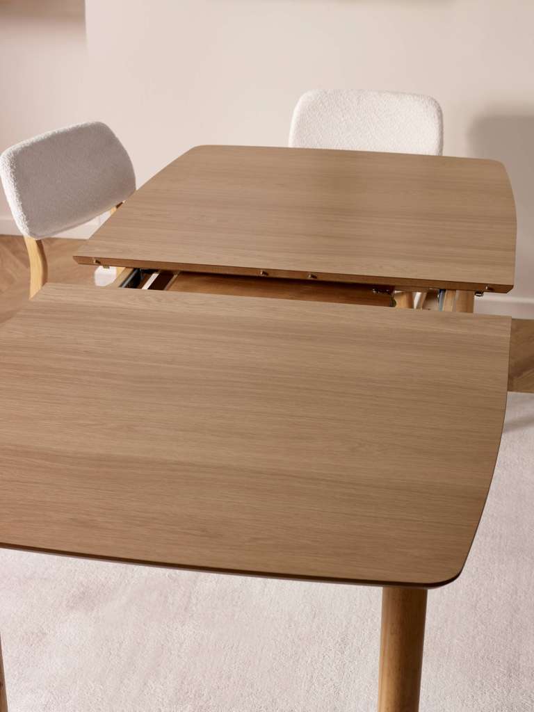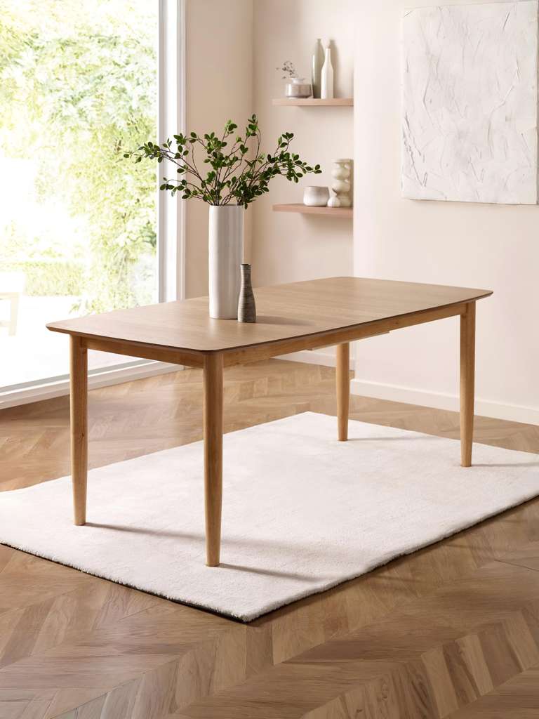 Sleek and versatile, this extending dining table blends natural warmth with modern simplicity. Finished in a smooth oak effect, its slender tapered legs and softly rounded edges bring a light, effortless feel to your dining space. Designed for everyday use, the hidden extension panel allows the table to expand smoothly, ideal for everything from casual weeknight dinners to hosting guests. Whether used as a kitchen table or a dining table for special occasions, it offers timeless style with practical flexibility.