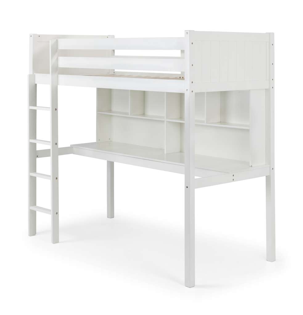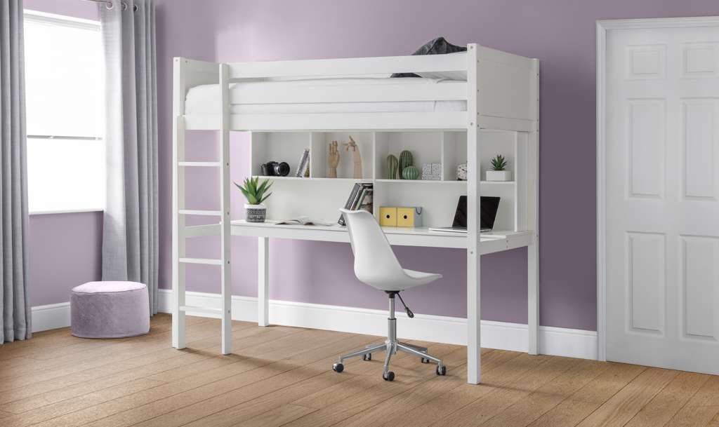 Crafted from Malaysian Hardwood and MDF, the Titan High sleeper is finished in a choice of White, Grey or Anthracite lacquer, matching with any bedroom décor as they grow. Offering a classic design with panelled detailing, this high sleeper features a workstation underneath, complete with shelves and room beneath for extra storage.