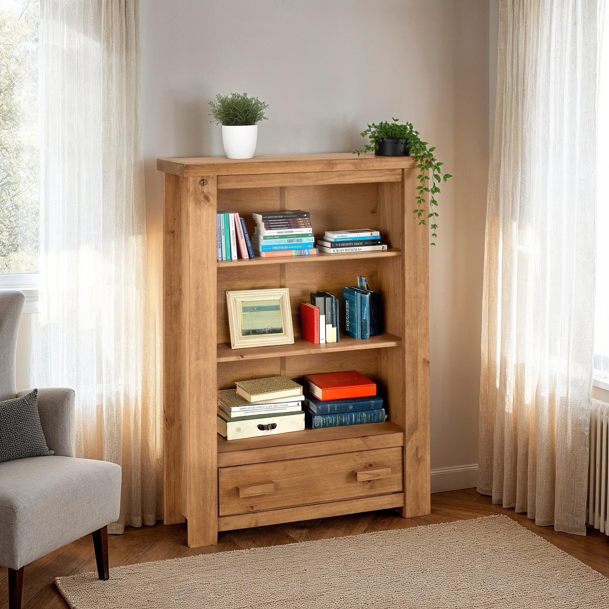 Bring warmth and easy style to your home with the Tortilla 1 Drawer Bookcase in a Distressed Waxed Pine. Everyday-friendly and tidy, it offers practical space for clothes and essentials you'll use from day one. Clean lines and a durable build make it an easy fit in both modern and classic rooms.