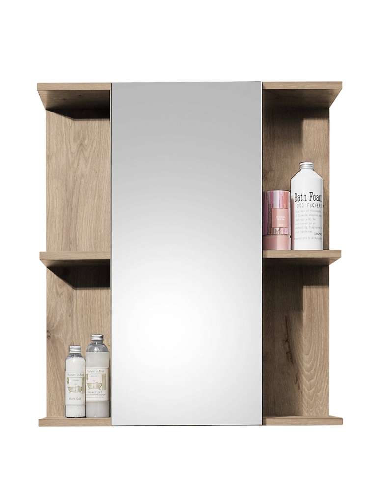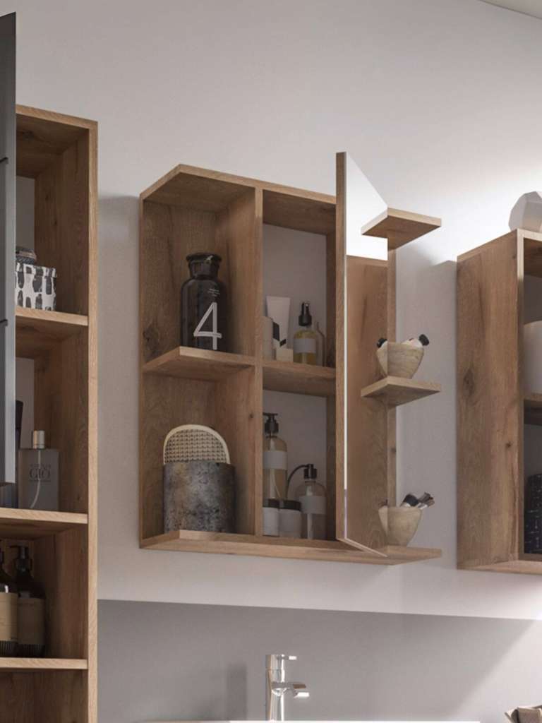 Bring modern elegance and smart storage together with the Vista Mirror Cabinet. Featuring a striking Viking Oak frame, this piece effortlessly enhances any bathroom. The central mirrored door opens to reveal two hidden shelves, perfect for storing daily essentials, while the four open shelves offer easy access to frequently used items. The sleek design seamlessly combines style and functionality, making it a practical yet sophisticated addition to your space.