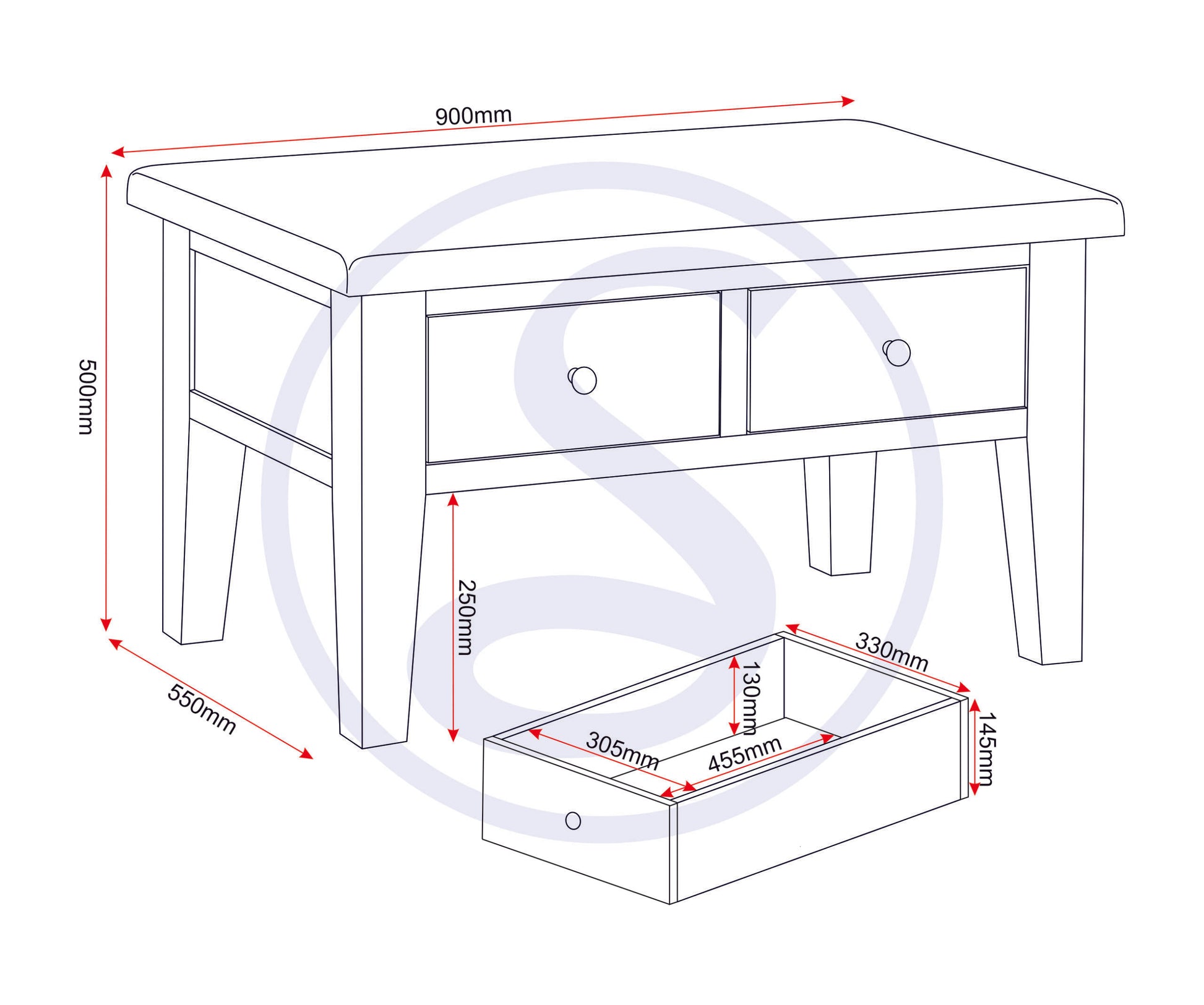 Windsor 2 Drawer Coffee Table - Natural Oak