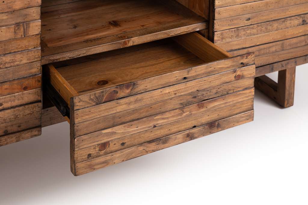Our beautifully crafted Woburn Media Unit combines gorgeous reclaimed wood with superior design. This media unit is the perfect mix between rustic and contemporary, leaving an overwhelming classic yet versatile charm. Due to its recycled nature, no two media units are the same, which makes your Woburn media unit a unique addition to your home.