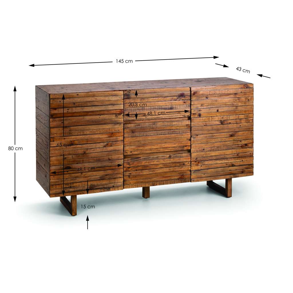 Our beautifully crafted Woburn Sideboard combines gorgeous reclaimed wood with superior design. This sideboard is the perfect mix between rustic and contemporary, leaving an overwhelming classic yet versatile charm. Due to its recycled nature, no two sideboards are the same, which makes your Woburn sideboard a unique addition to your home.